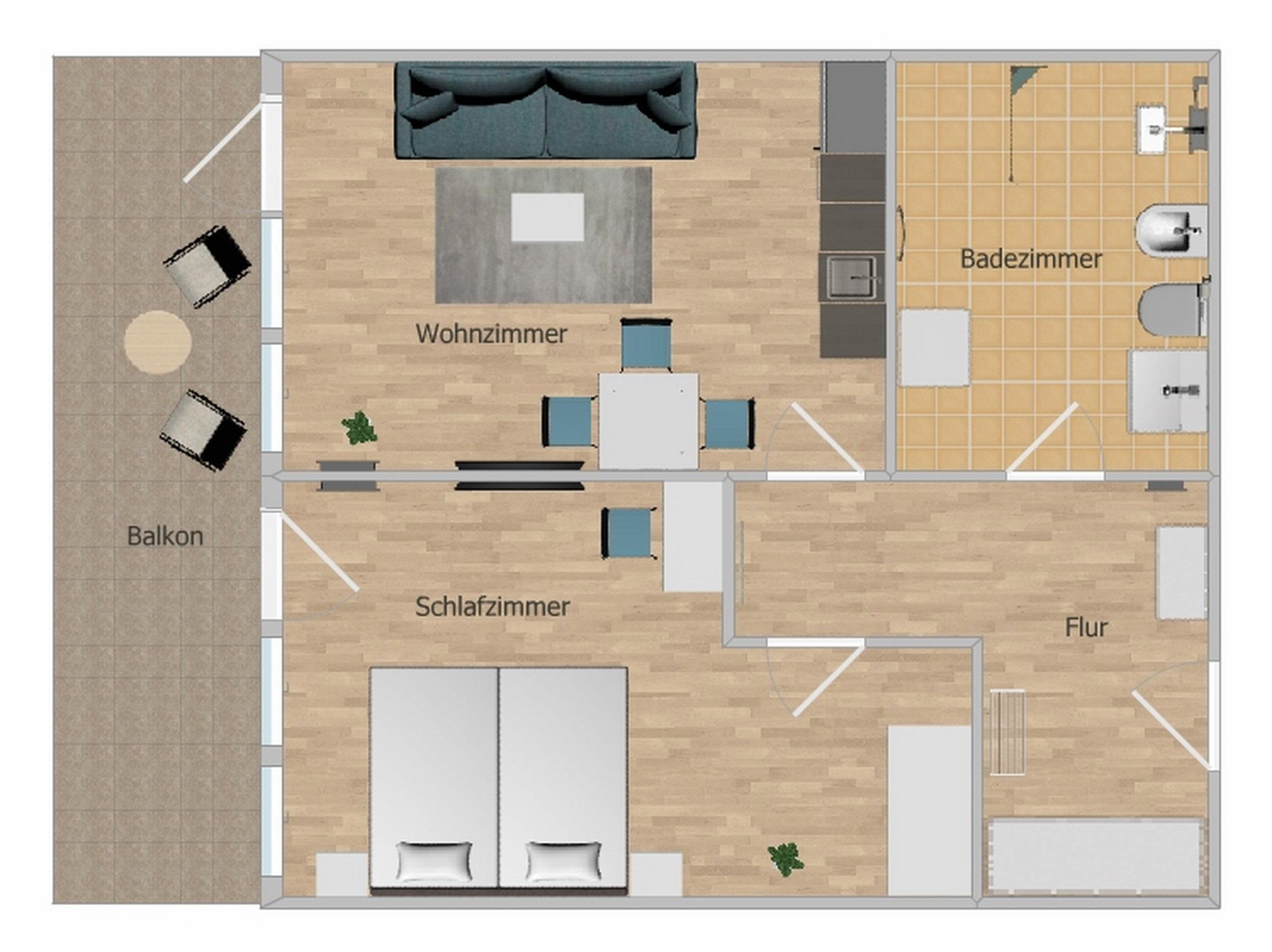 - 2-Zimmerappartement mit 56 qm Wohnfläche auf der 1. Etage