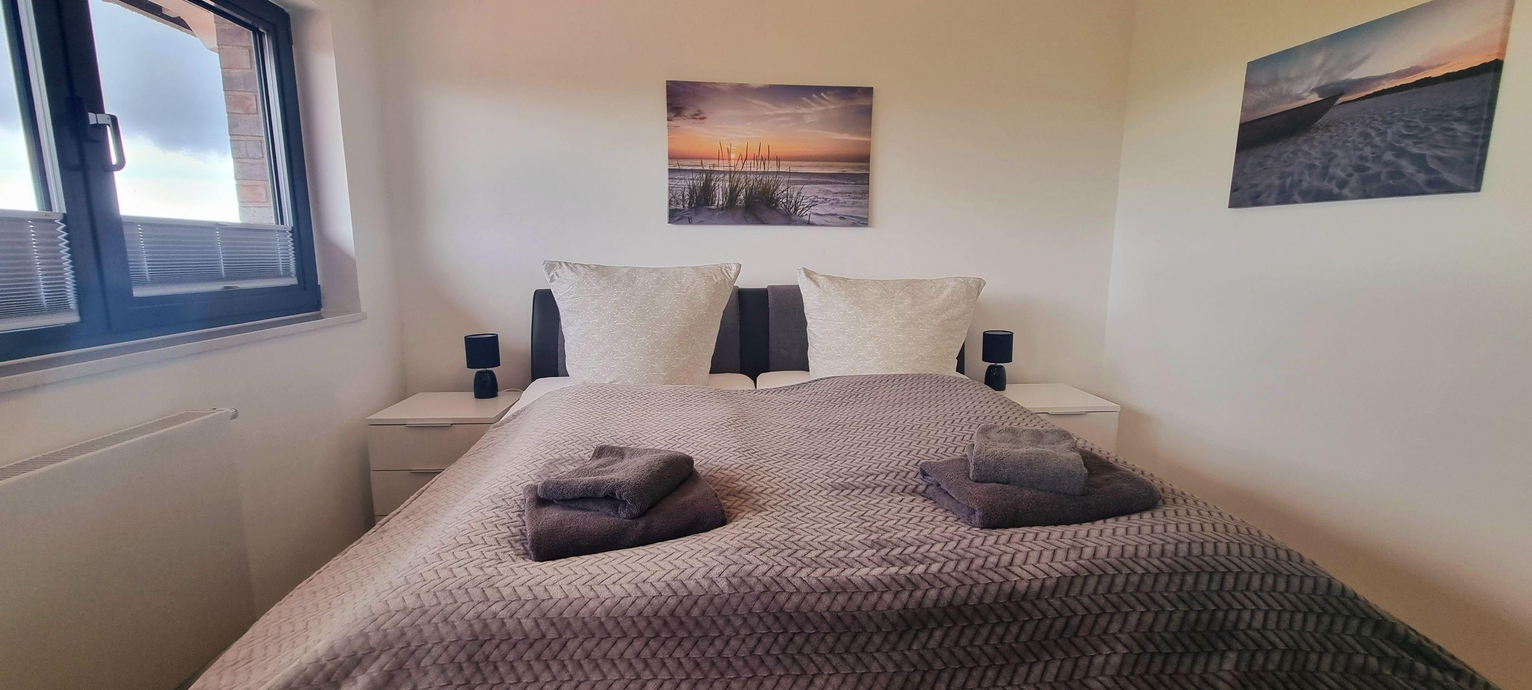 Dieses hochwertig eingerichtete Appartement befindet sich in der obersten Etage der Appartementanlage "Aurora Vista" in Hohen-Wieschendorf und verfügt über ein separates Schlafzimmer mit TV und Doppelbett.