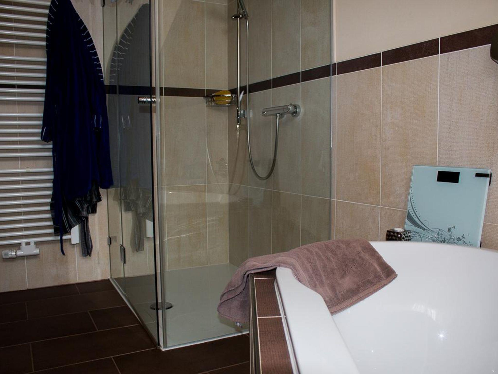 Das Bad verfügt über eine Fußbodenheizung, Dusche 90x120 cm, WC,
