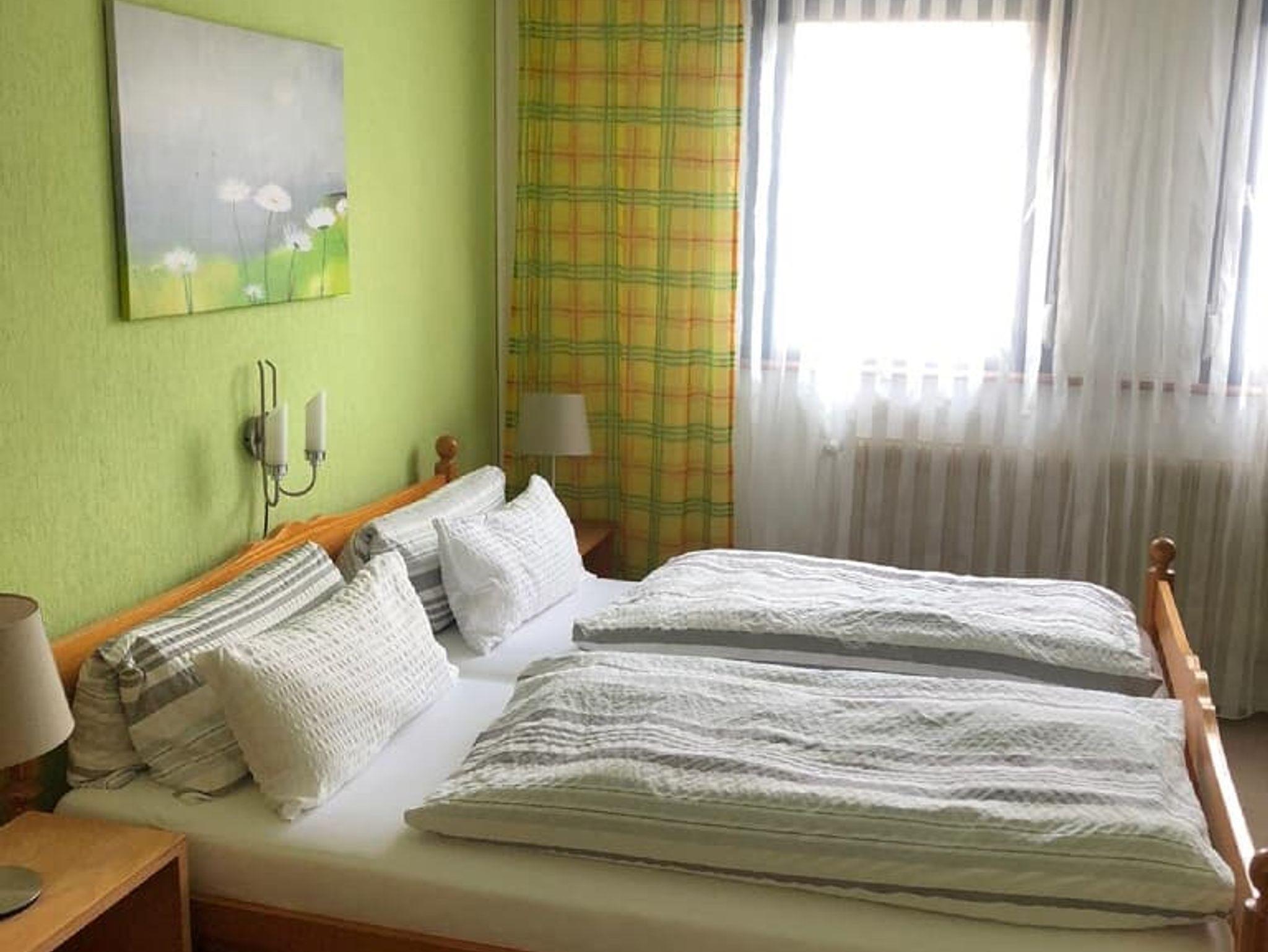 Unsere gemütlichen Doppelzimmer verfügen alle über ein Doppelbett (Trennung möglich), einen Schreibtisch mit Sitzgelegenheit, Gemeinschaftsbalkon, einen Fernseher und WLAN im Zimmer. Wir legen im Bad frische Handtücher und Bademäntel für Sie zurecht, die Sie gerne für den Aufenthalt in unserer Sauna benutzen können. Ein Parkplatz ist im Zimmerpreis inbegriffen.