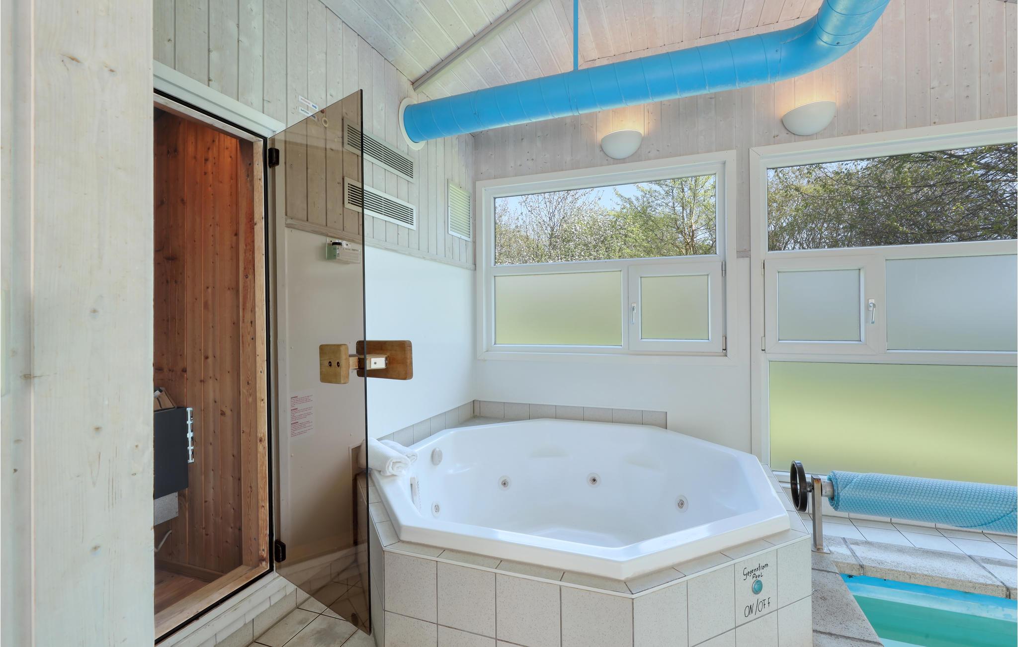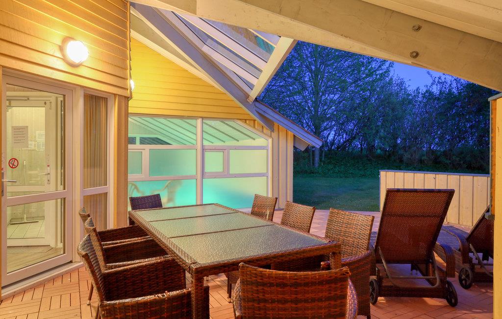 Dette innbydende feriehuset med privat svømmebasseng er akkurat det du har drømt om. Her kan du slå deg ned sammen med storfamilien eller venner av familien. Kom sammen i stuen, som flommer over av dagslys. Her er det en vedovn som innbyr til avslappende timer foran den knitrende ilden, selv når det er kaldt. Fra stuen kan du også følge med på aktivitetene til dine nærmeste i bassengrommet ved siden av gjennom en glassvegg. Det store bassenget med motstrømsanlegg innbyr til lek og moro. Rett ved siden av kan opptil fem personer slappe av under massasjestrålene i boblebadet. Her er det bare å unne seg en pause fra hverdagen!