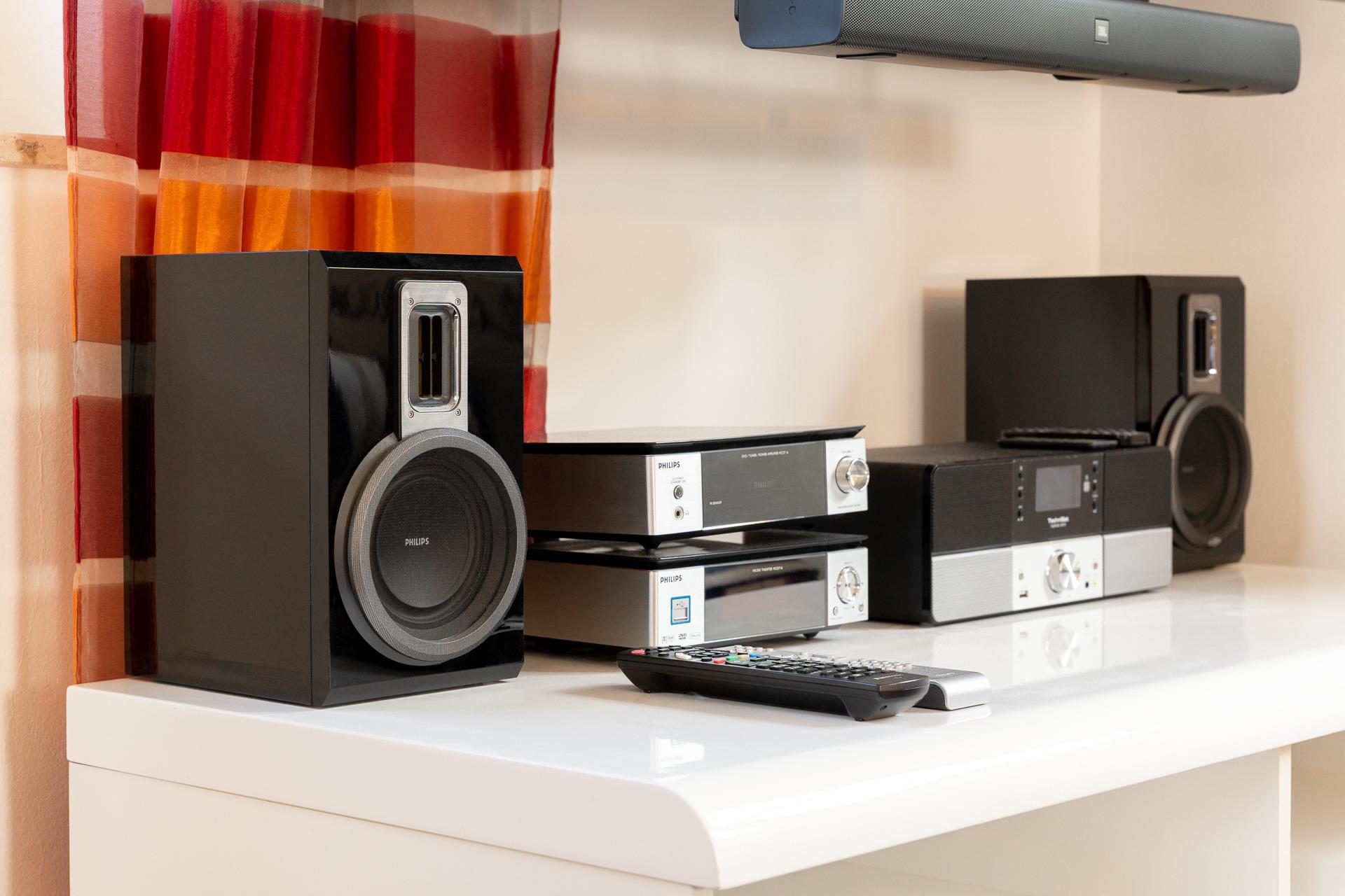Die moderne Einbauküche ist umfassend ausgestattet und beinhaltet Geschirrspüler, Mikrowelle und Backofen. Im Wohnbereich können Sie vor dem Flat-TV mit Soundbar und Radio entspannen, zusätzlich gibt es einen Fernseher im Schlafzimmer im Obergeschoss. Auf der Terrasse laden unsere Gartenmöbel zu entspannten Grillabenden ein.