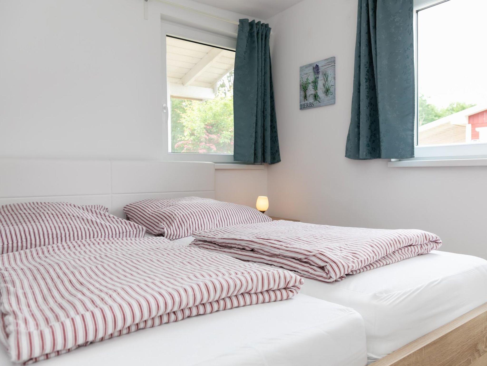Dieser gemütliche Bungalow ist für 4 Personen und hat ca. 42 qm (Erstbezug Juni 2019). Er hat 2 Schlafzimmer mit Doppelbetten (2 Matratzen à 80×200 cm) und 2 Kleiderschränke. 2 Kissen und 2 Bettdecken sind vorhanden, nur die Bezüge müssen selbst mitgebracht werden.