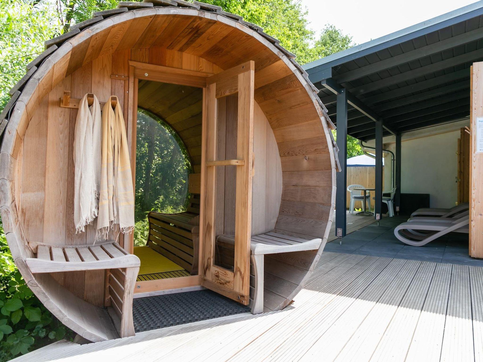 Die überdachte Holzterrasse ist mit Stühlen und einem Tisch ausgestattet und lädt euch dazu ein, den vielen Vögeln im naheliegenden Wald zu lauschen.