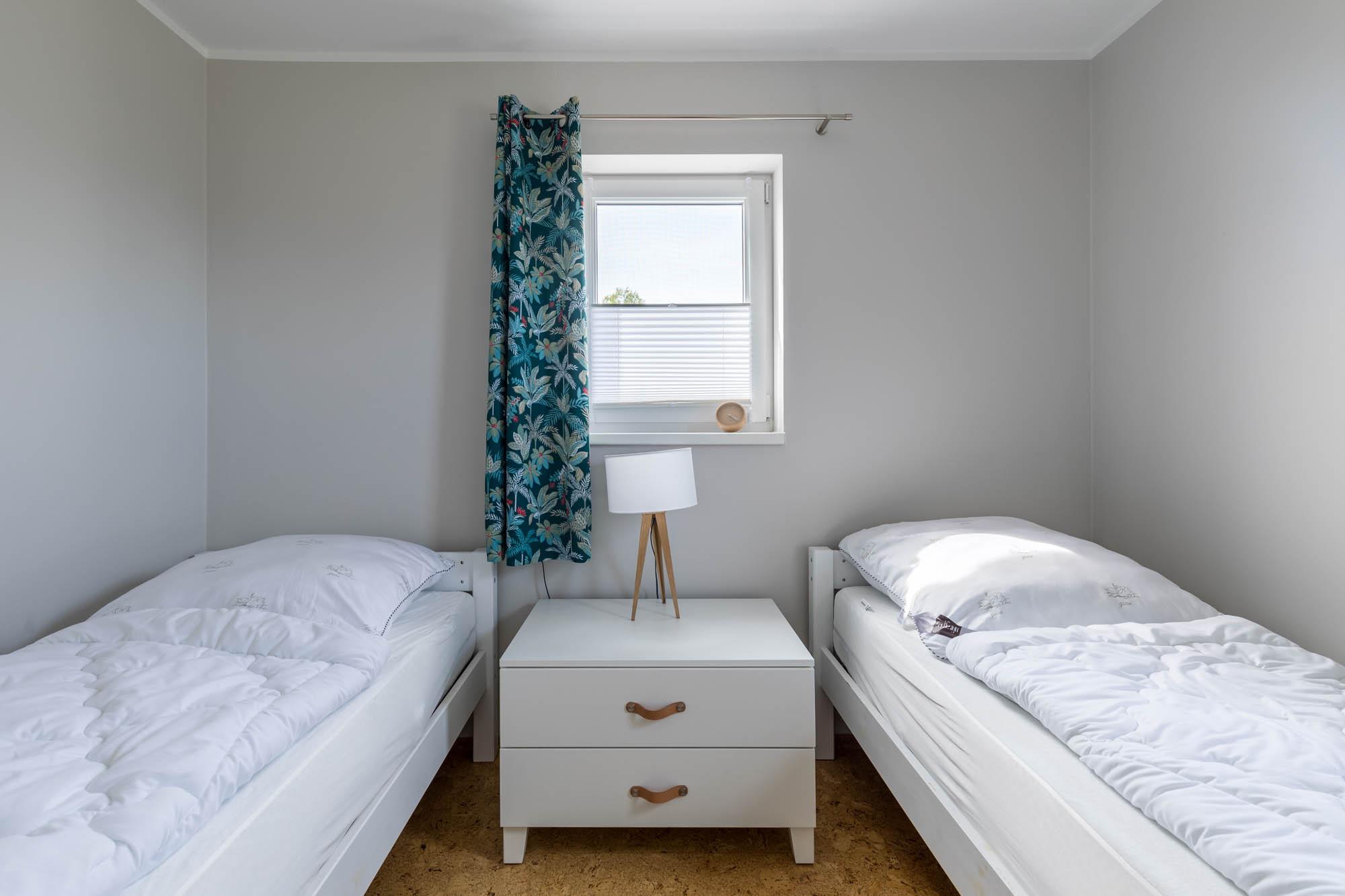 Im Ferienhaus gibt es 3 separate Schlafzimmer: eines mit einem großen Doppelbett, ein Schlafzimmer mit zwei Einzelbetten und ein Schlafzimmer mit einem Etagenbett, wobei das untere Bett für 2 Gäste ausreicht.