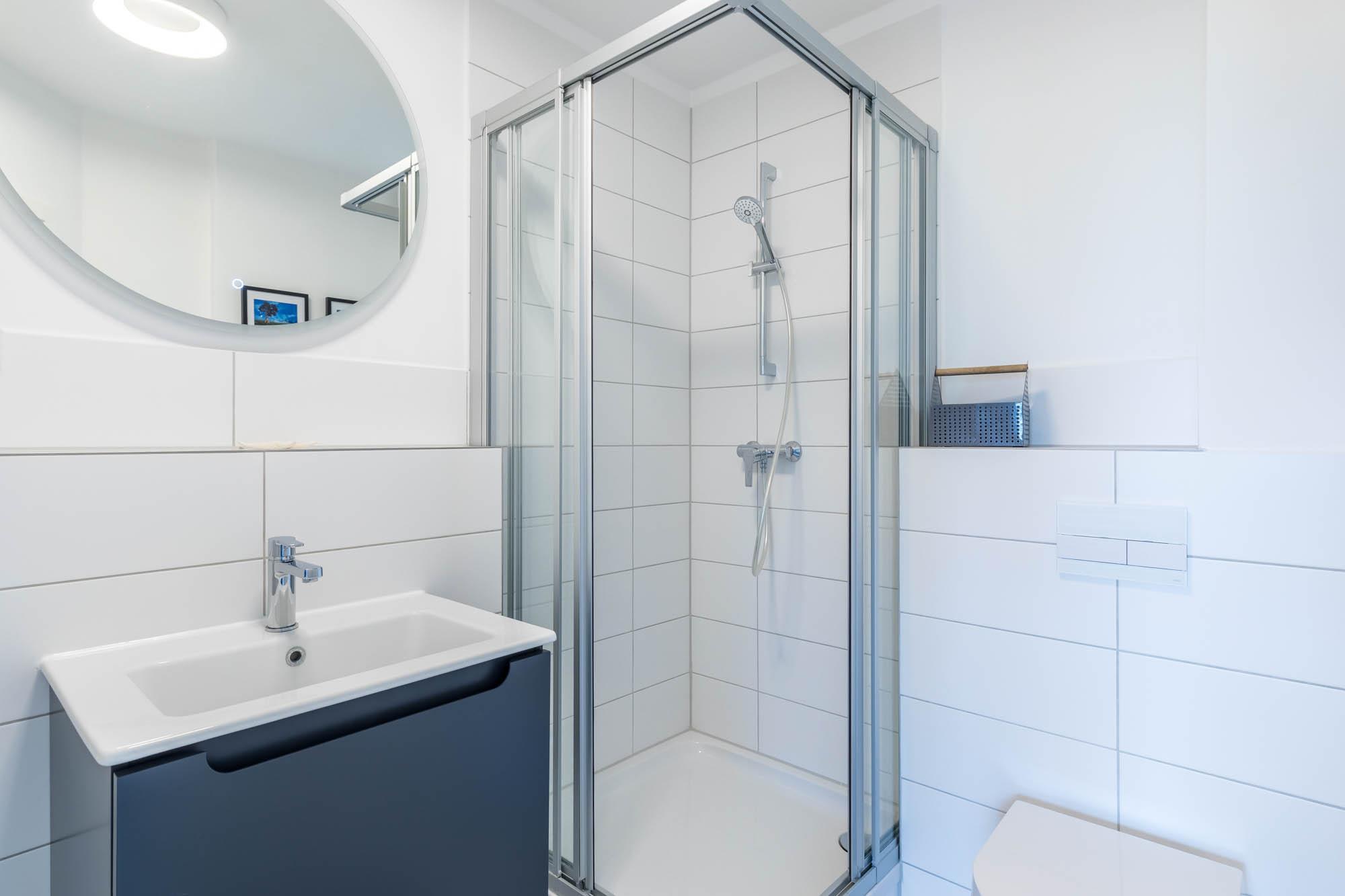 Im Badezimmer finden Sie eine Dusche und ein WC.
