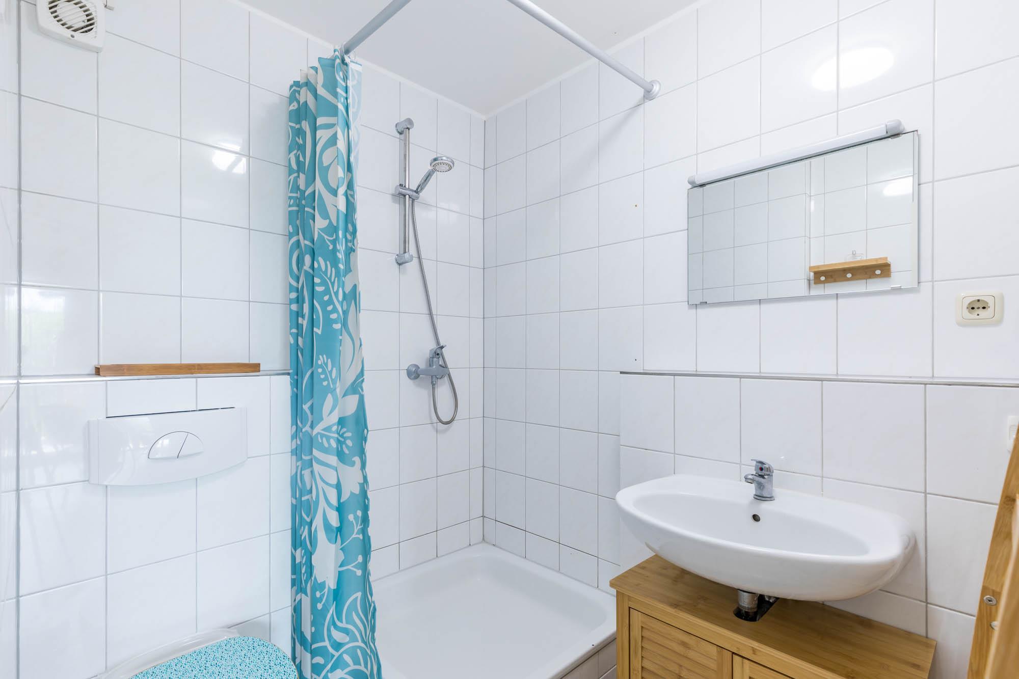 Im Badezimmer finden Sie eine Dusche und ein WC.