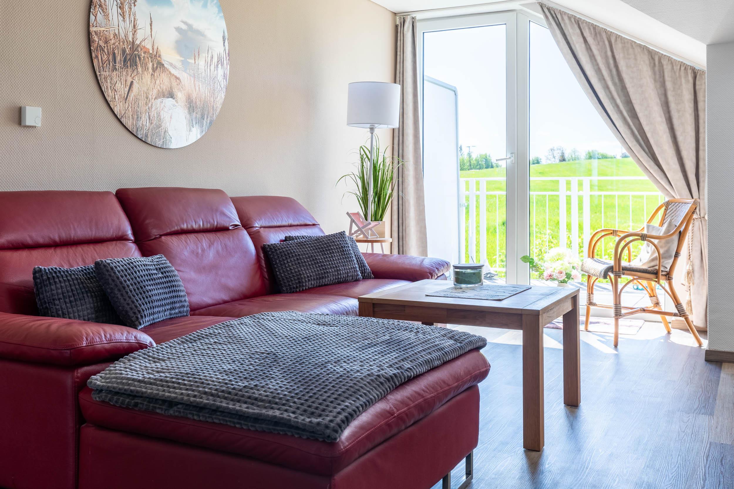 In dieser Nichtraucher-Wohnung stehen für unsere kleinsten Gäste ein Hochstuhl und ein Reisebettchen mit passender Matratze kostenfrei zur Nutzung bereit. Die Wohnung hat einen eigenen Eingang über den Laubengang mit herrlicher Aussicht zur Ostsee.