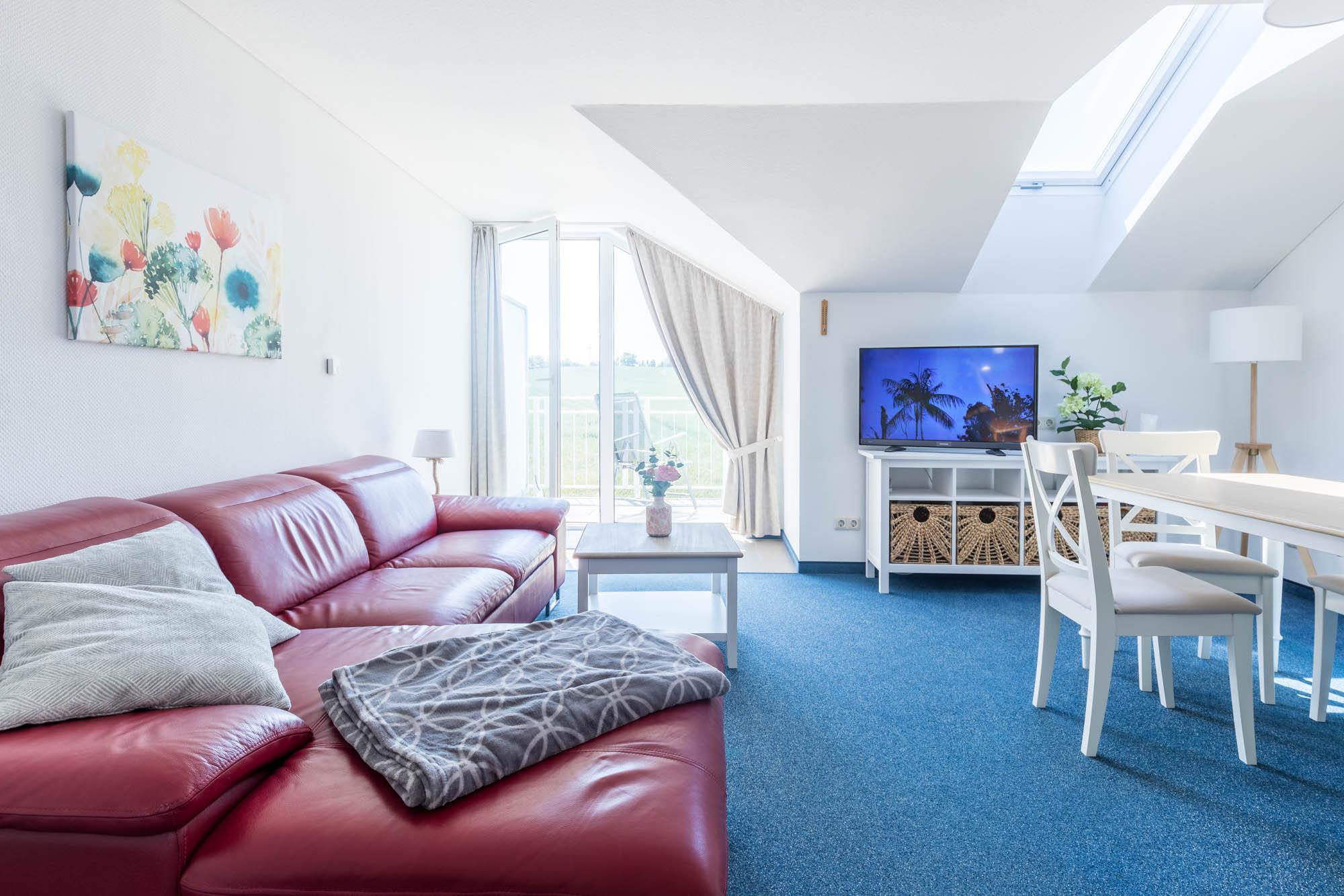 In dieser Nichtraucher-Wohnung steht für unsere kleinsten Gäste ein Hochstuhl und ein Reisebettchen mit passender Matratze kostenfrei zur Nutzung bereit. Die Wohnung hat einen eigenen Eingang über den Laubengang mit herrlicher Aussicht zur Ostsee.