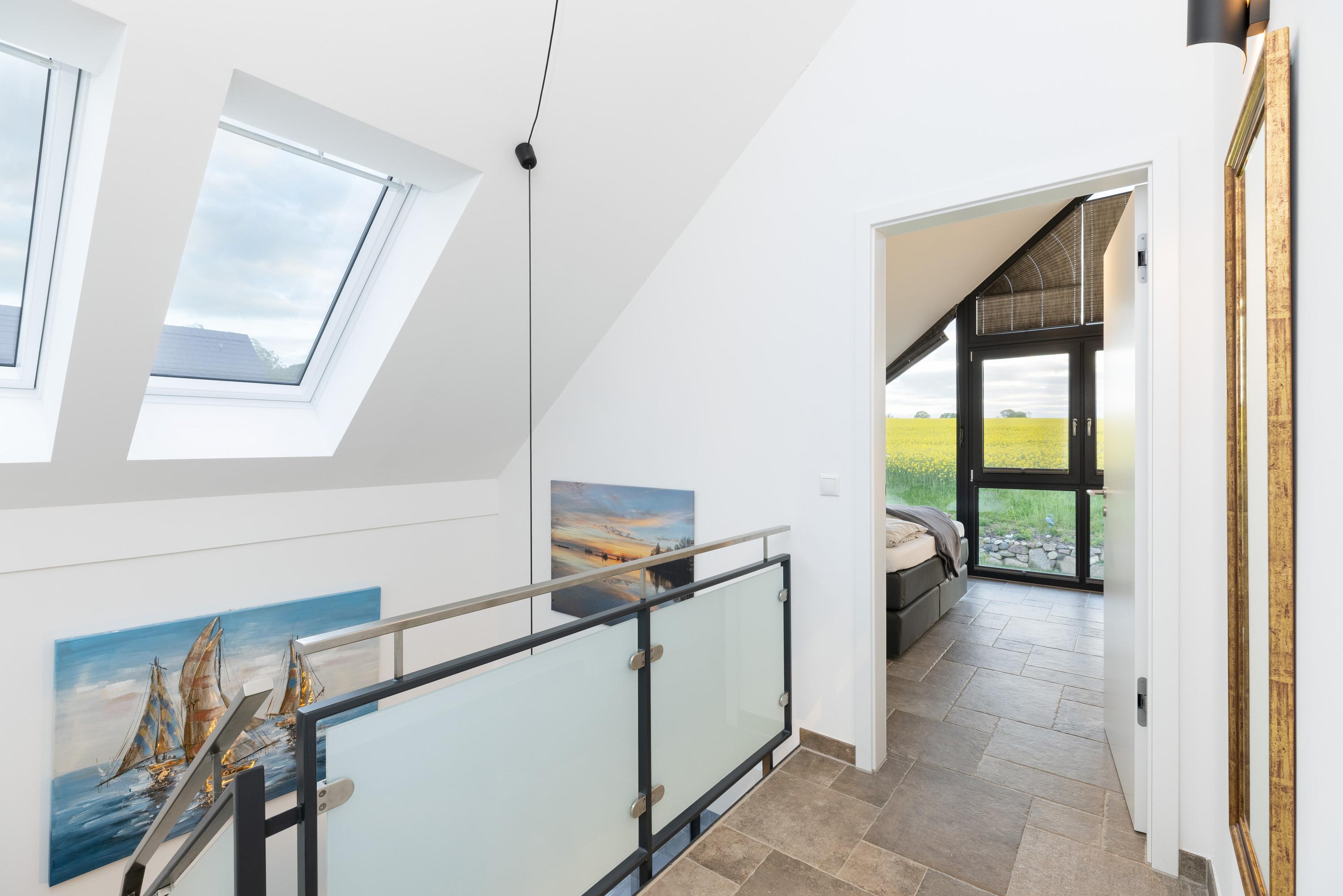 Die moderne Küche ist offen angelegt und mit allem ausgestattet, was man benötigt, um nicht nur den schnellen Snack für zwischendurch, sondern auch das Mehrgangmenü am Abend zubereiten zu können. Großzügige Fensterfronten, ein komfortabler Esstisch und eine gemütliche Sitzgruppe prägen den lichtdurchfluteten Wohnbereich. Und was gibt es Schöneres an kühlen Abenden, als das Flackern von brennenden Holzscheiten im Kamin! Wer die raue Schönheit der Küste in Herbst und Winter liebt, weiß die Wärme und Behaglichkeit eines Kaminfeuers zu schätzen. Denken Sie daher bei Ihrer Buchung am besten gleich daran, Kaminholz für den ersten Abend zu bestellen.