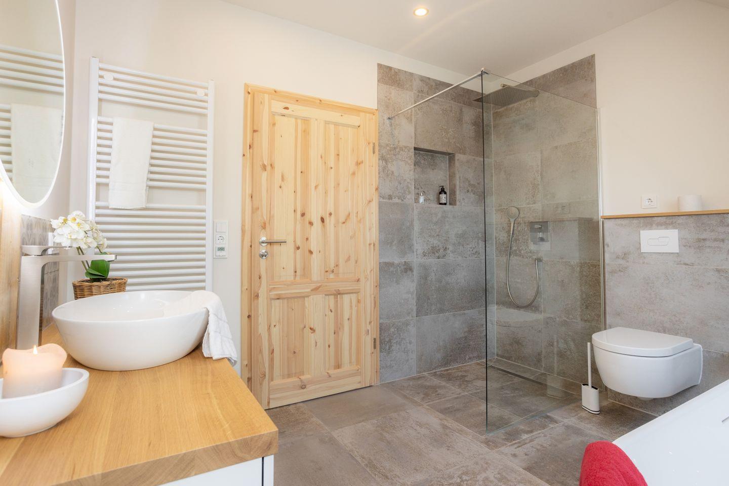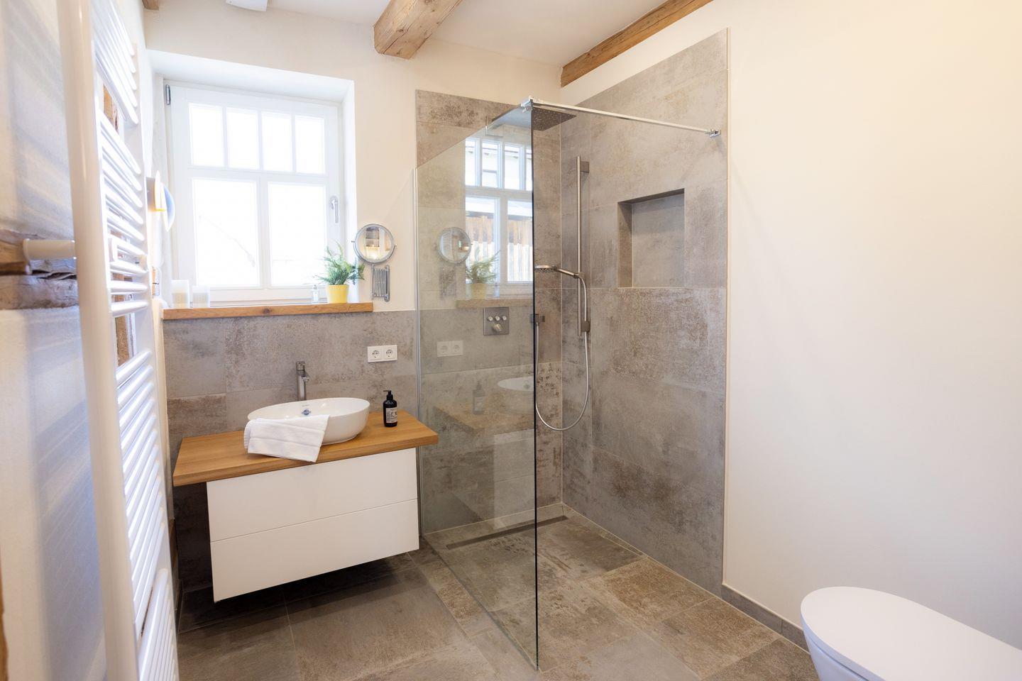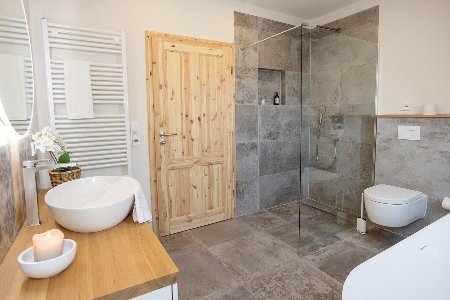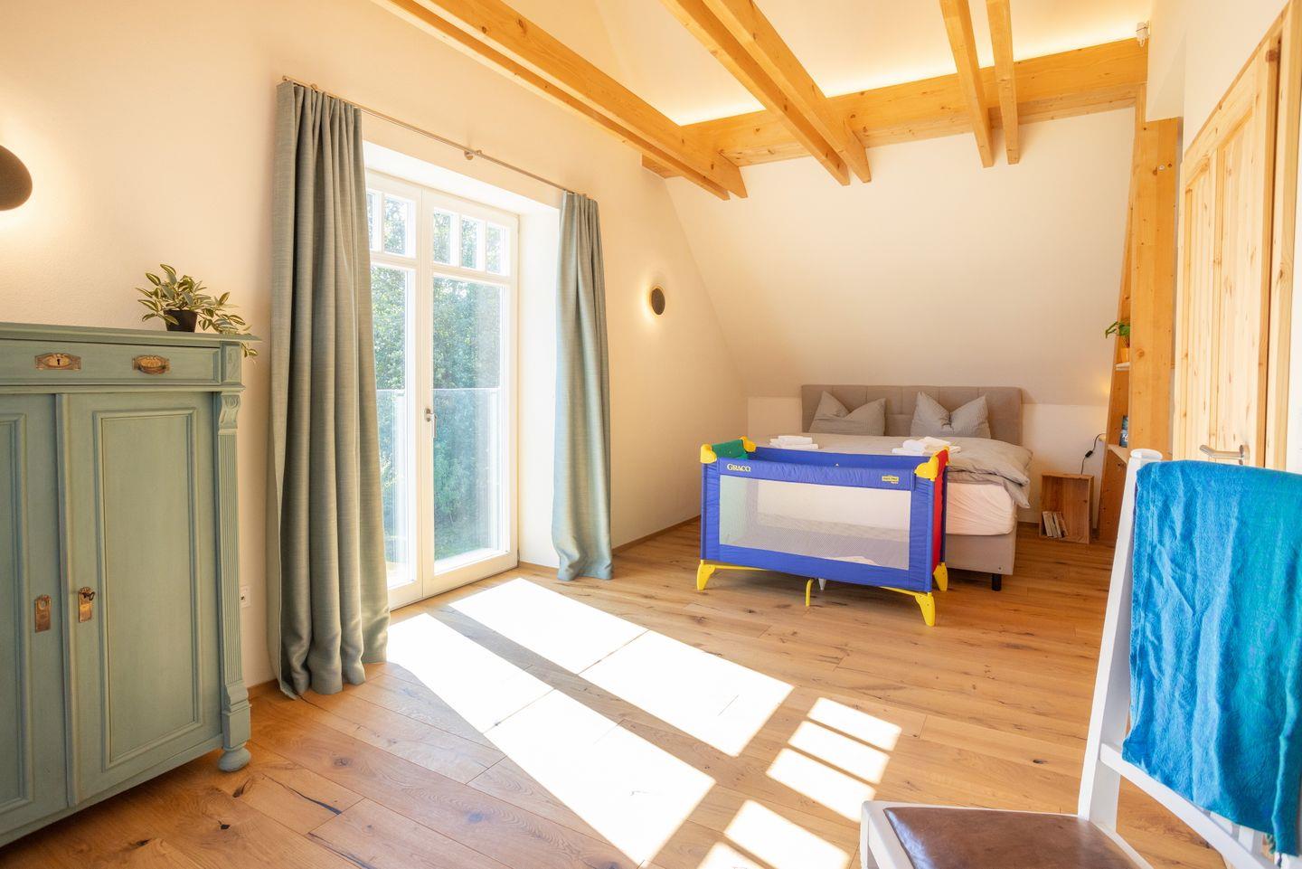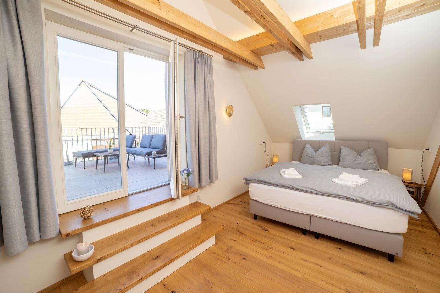 Drinnen erwarten euch 6 Schlafzimmer, ergänzt durch einen offenen Spitzboden mit zwei weiteren Betten. Zwei der Zimmer sind Durchgangszimmer, was besonders für Familien mit Kindern praktisch ist. Bei einer Einzelbelegung haben wir somit Platz für maximal 5 Personen. Dazu zwei stilvolle Bäder (eins mit Dusche, eins mit Dusche und freistehender Wanne), ein großer Wohnbereich mit Sofaecke und Klavier sowie eine moderne Küche mit allem, was ihr braucht. WLAN, Bluetooth-Box, TV und Fußbodenheizung sorgen für Gemütlichkeit – zu jeder Jahreszeit.