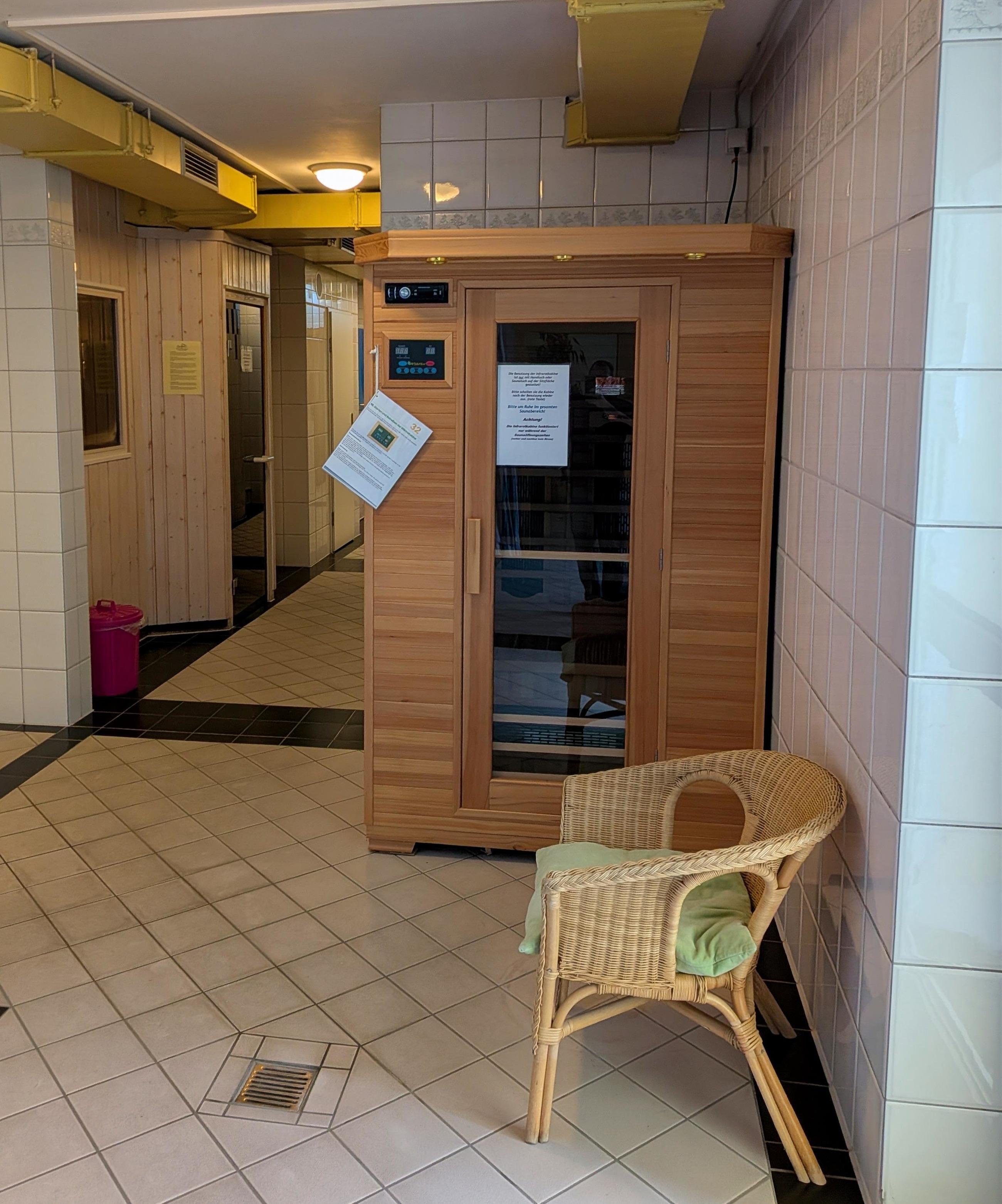 Die Nutzung der Sauna und Infrarotkabine ist kostenlos inkludiert. Sie ist in den Wintermonaten jeweils Mittwoch, Samstag und Montag nutzbar. Sie müssen sich hierzu einen Tag vorher in der an der Rezeption ausliegenden Liste eintragen. Eine Mindestteilnehmerzahl von 3 Personen wird vorausgesetzt.