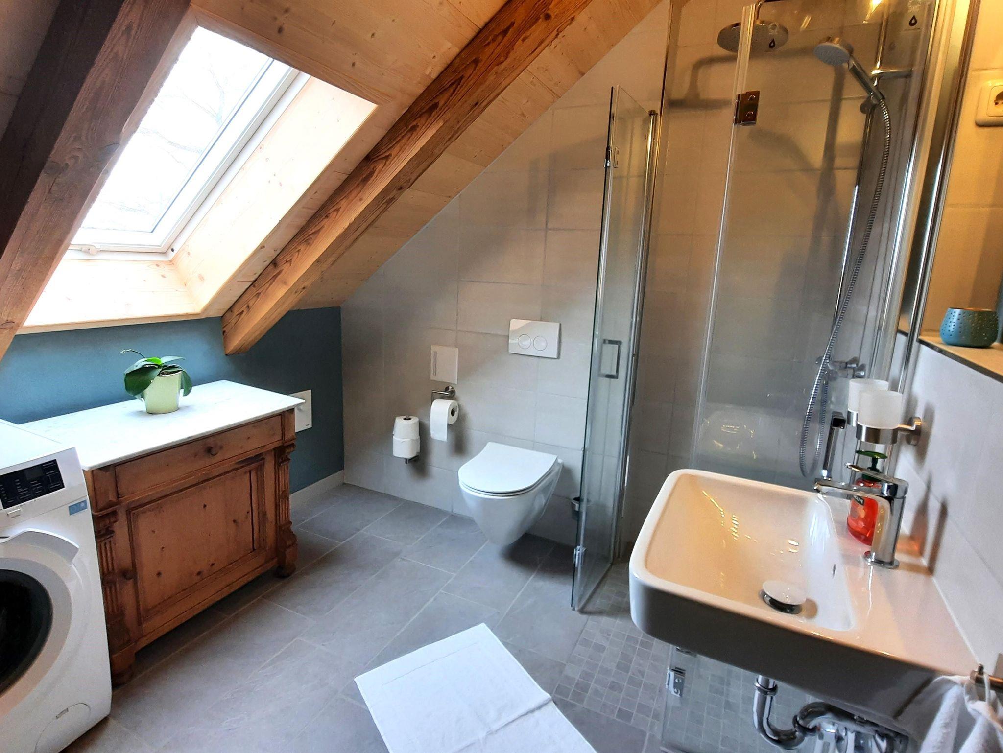 Die ausziehbare Couch bietet eine Schlafgelegenheit für bis zu 2 Personen. In den angrenzenden Räumen befindet sich ein Schlafzimmer mit einem Doppelbett und zwei weitere Schlafzimmer mit jeweils einem Einzelbett. Das moderne Bad verfügt über eine Fußbodenheizung, eine bodenebene Dusche und eine Waschmaschine.