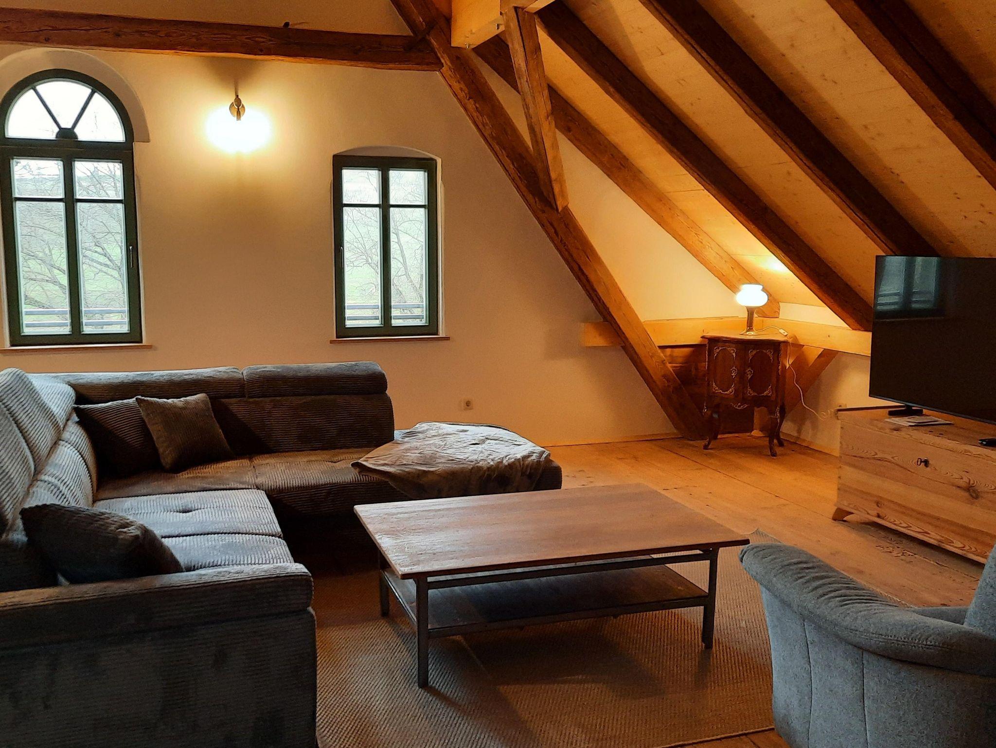 Auf 114 m² Wohnfläche erwartet Sie eine neu errichtete, überaus großzügige Ferienwohnung mit besonderem Charme. Gelegen im Dachgeschoss schaffen alte Dielenfußböden, sichtbare Deckenbalken und natürliche Lehmwände eine warme, ruhige Atmosphäre, in der man sofort ankommt und durchatmet. Die Wohnung verbindet Weite und Gemütlichkeit. Viel Licht, natürliche Materialien und ein offenes Raumgefühl machen sie zum idealen Rückzugsort nach einem Tag in der Natur. Die Ferienwohnung „Blauregen“ steht ab März 2026 erstmalig als Übernachtungsmöglichkeit zur Verfügung.