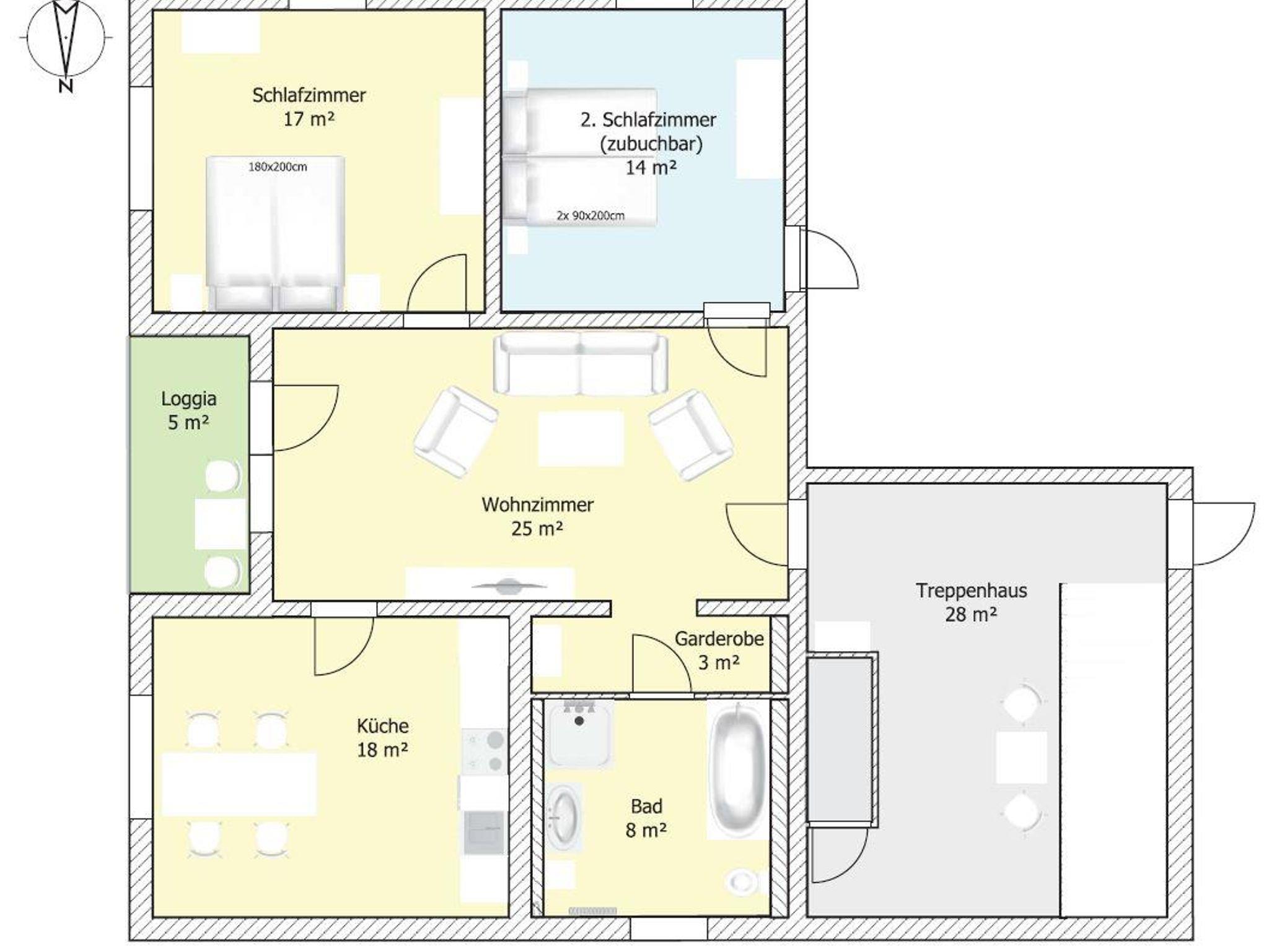 Mit einem Zustellbett oder Babyreisebett ist diese Ferienwohnung für maximal 5 Personen buchbar. Bei 3 Personen besteht die Möglichkeit, die Ferienwohnung mit 1 Schlafzimmer und Zustellbett oder mit 2 Schlafzimmern zu buchen. Ab 4 Personen ist das 2. Schlafzimmer inklusive.