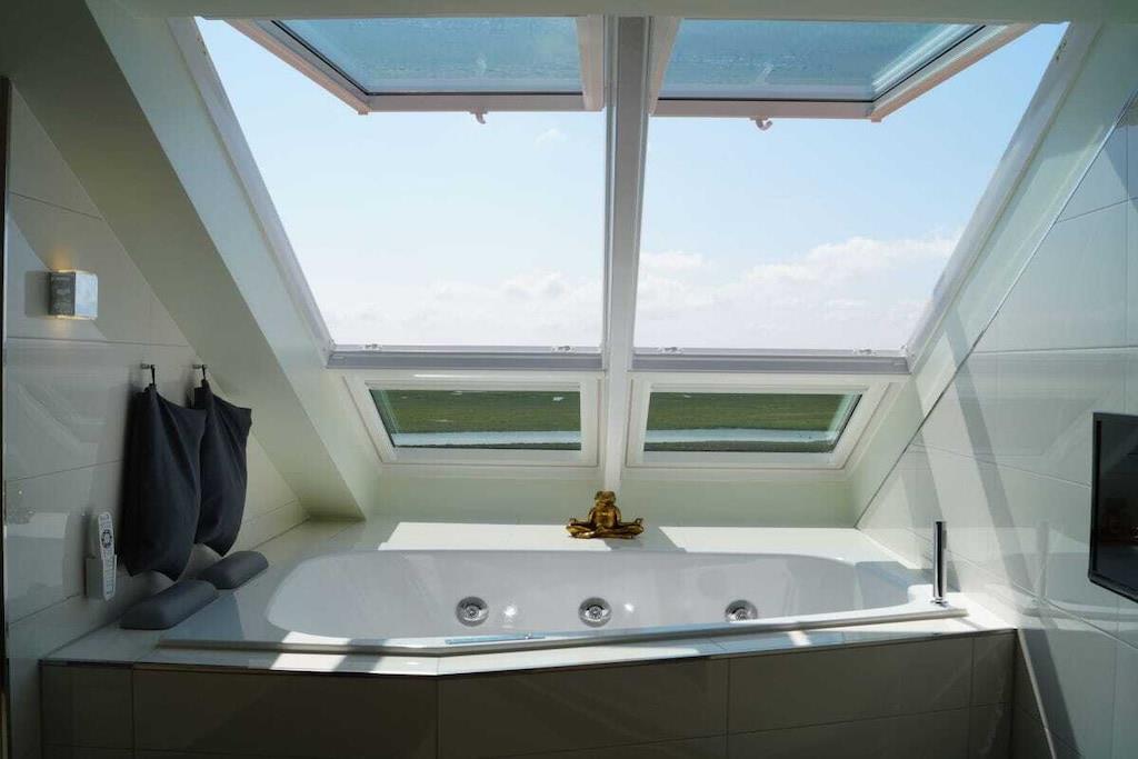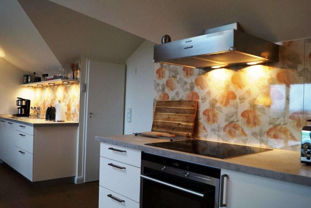 Alle forbruksbaserte strømregninger, samt sengetøy og håndklær, er inkludert. Denne eksklusive studioleiligheten tilbyr romslig boareal for to personer på 80 m². Kombinasjonen av moderne teknologi og stilfulle møbler, med materialer av høy kvalitet og antikviteter, etterlater ingenting å ønske seg. I stue/spisestue finner du en gasspeis som kan styres med et knappetrykk, en flatskjerm-TV og et Geneva-lydsystem som kobles til smarttelefonen, nettbrettet eller den bærbare datamaskinen din via Bluetooth. Du kan også få tilgang til et lite utvalg litteratur i minibiblioteket. Wi-Fi er også tilgjengelig. Kjøkkenet er utstyrt med komfyr, stekeovn, mikrobølgeovn, kjøleskap, oppvaskmaskin, blender, brødrister og kaffetrakter. Ellers er alt av kjøkkenutstyr tilgjengelig, slik at du kan nyte dine egne kreasjoner. Fra den store takterrassen kan du oppleve vannfuglenes hvileplasser ufiltrert. I tillegg til en vannseng (gel) på 2,0 m x 2,20 m har soverommet en flatskjerm-TV som kan heves fra kommoden ved enden av sengen med en fjernkontroll. Et panoramavindu over sengen sørger for at du ikke går glipp av stjernehimmelen. Den østvendte balkongen, som er tilgjengelig fra soverommet, lar deg nyte frokost med utsikt over Østersjøen. Alle vinduer kan skyggelegges med amerikanske skodder eller rullegardiner. Myggnett er også tilgjengelig på soverommet. En safe stor nok til en bærbar PC er tilgjengelig. På badet trenger du ikke å gå glipp av den vidstrakte utsikten eller favorittfilmen din. Du kan nyte begge deler fra boblebadet. Eller du kan streame favorittmusikken din direkte inn i boblebadet fra smarttelefonen, nettbrettet eller den bærbare datamaskinen. Et utvalg av utvalgte badeprodukter er tilgjengelig. Etter en lang spasertur på stranden kan du glede deg til din private badstue, eller, for de som foretrekker mindre intense temperaturer, varmekabinen. Opplevelsen avrundes av den store Wellness RainDance-dusjen. Badet har også dusj/toalett. En vaskemaskin/tørketrommel er også praktisk plassert på badet. Du kan parkere bilen rett foran inngangsdøren. Et låsbart sykkeloppbevaringsrom er tilgjengelig. Håndklær, badehåndklær, badstuhåndklær og ekstra stort sengetøy er selvfølgelig inkludert.