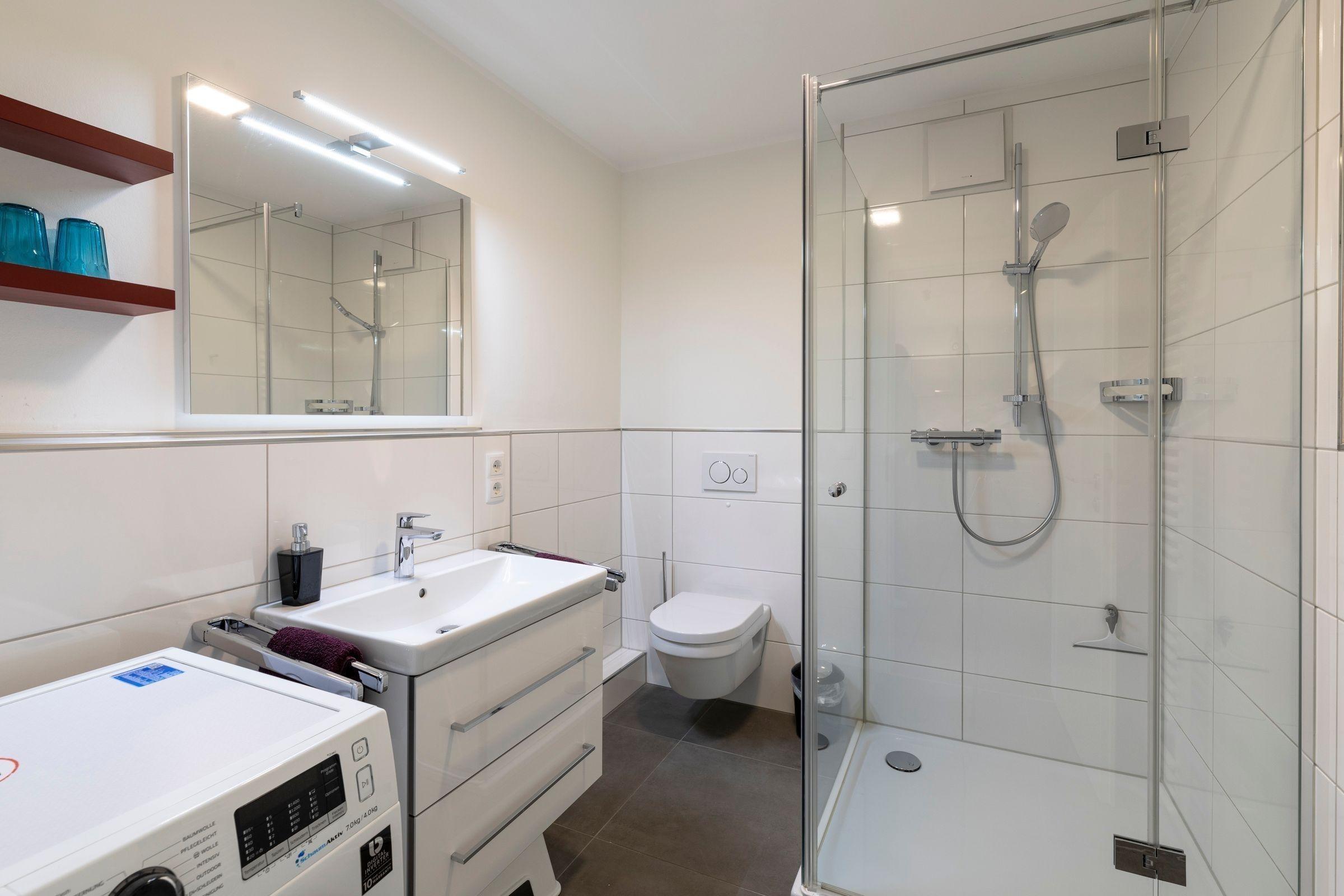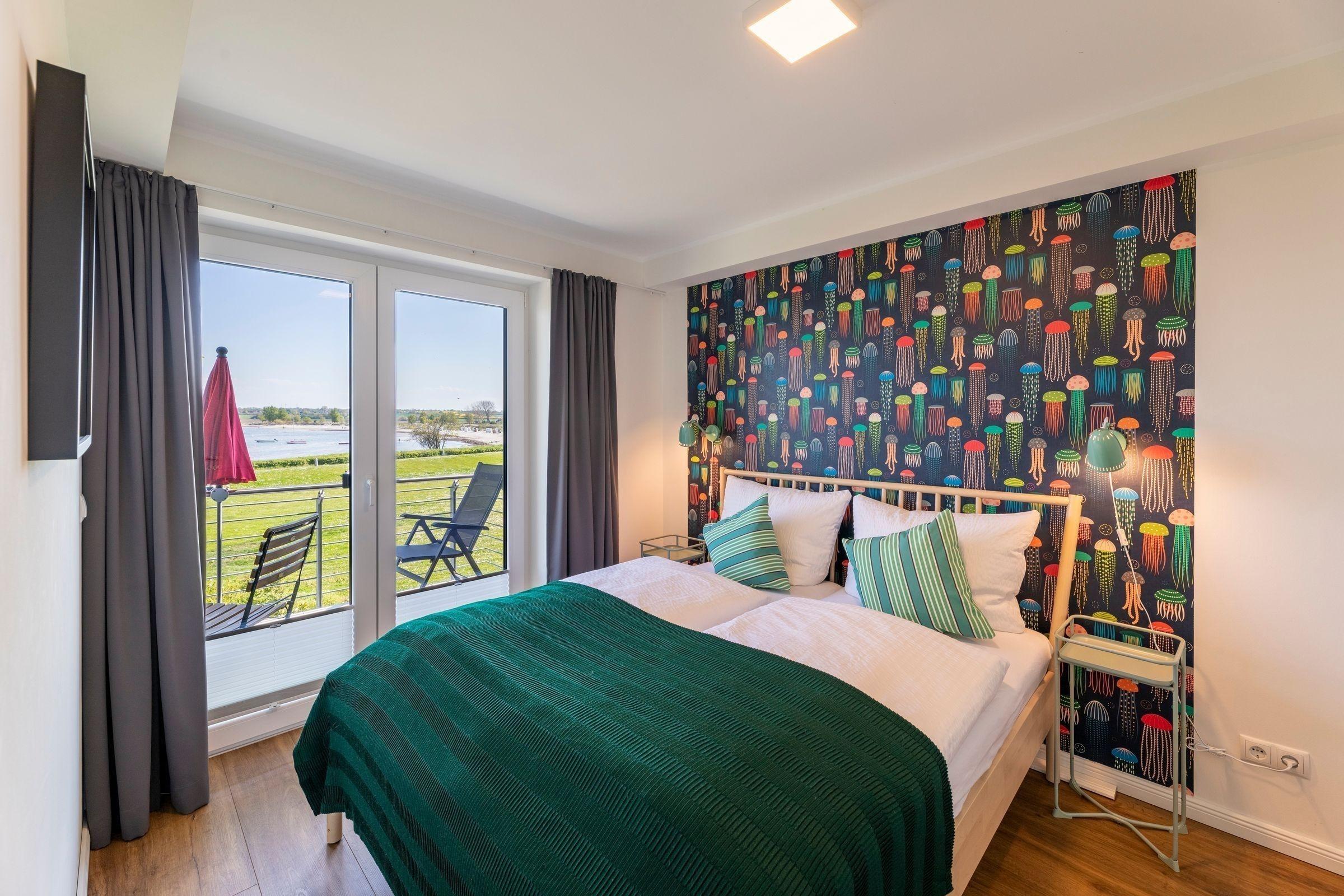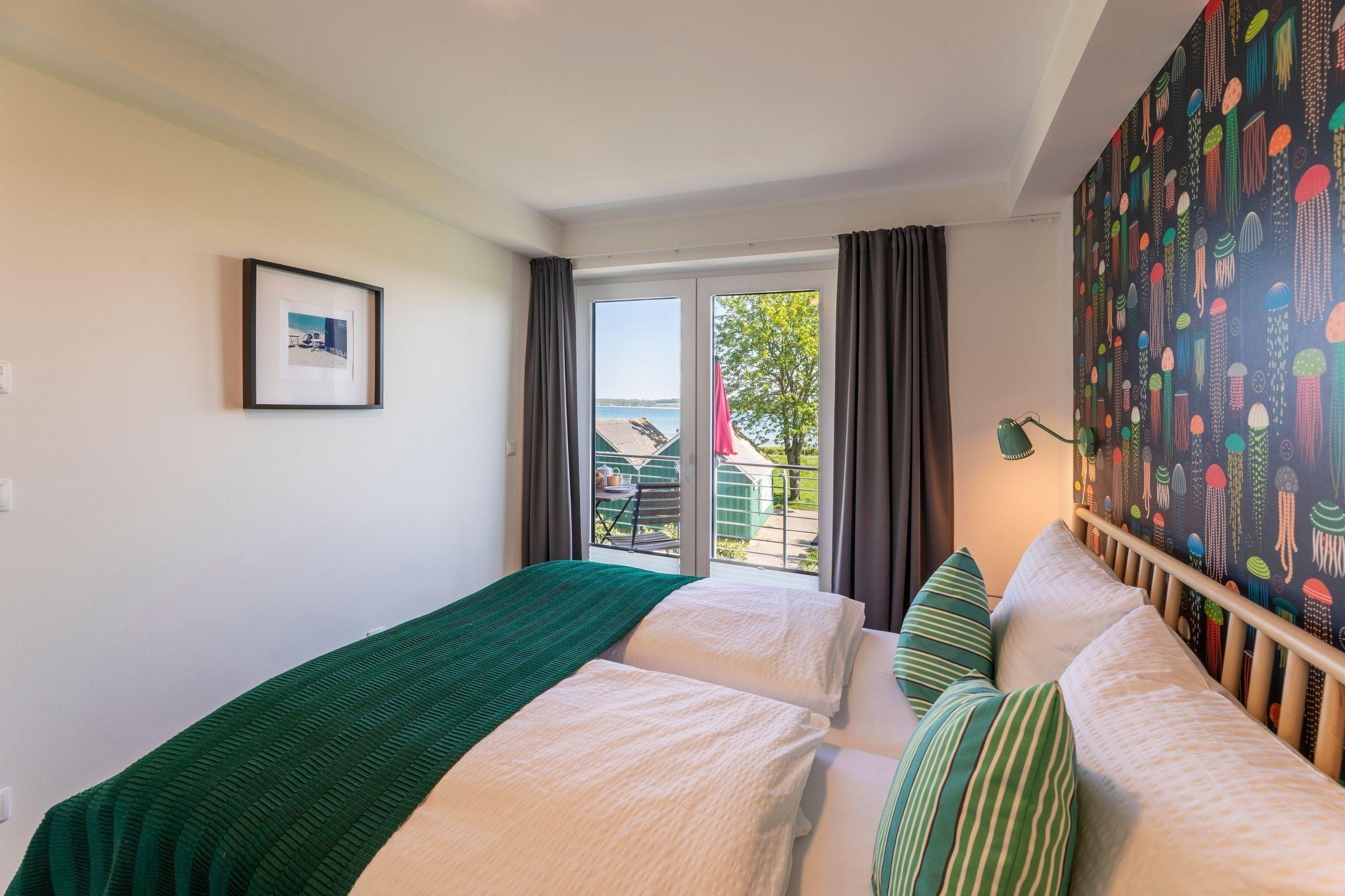 Die Ferienwohnung "Quartier 18" im Meeresblick besticht durch eine moderne, stilvolle Ausstattung und einen beeindruckenden Blick über die Ostsee. Auf 50 Quadratmetern finden bis zu vier Gäste Platz. Das weitläufige Wohnzimmer verfügt über große Fenster, die viel Licht hereinlassen, ein bequemes Sofa und einen großen Fernseher. Die offene, gut ausgestattete Küche mit L-Form bietet alle erforderlichen Geräte, darunter einen Geschirrspüler und eine Espressomaschine. Zwei Schlafzimmer, eines mit Doppelbett und eines mit zwei Einzelbetten, garantieren erholsame Nächte. Das moderne Badezimmer ist mit einer Regendusche und einer Waschmaschine ausgestattet. Die Wohnung ist über einen Fahrstuhl zugänglich und liegt nur wenige Meter vom Sandstrand entfernt. Gemeinsame Abstellmöglichkeiten für Fahrräder sind vorhanden. Ein Stellplatz für einen PKW rundet das Angebot ab.