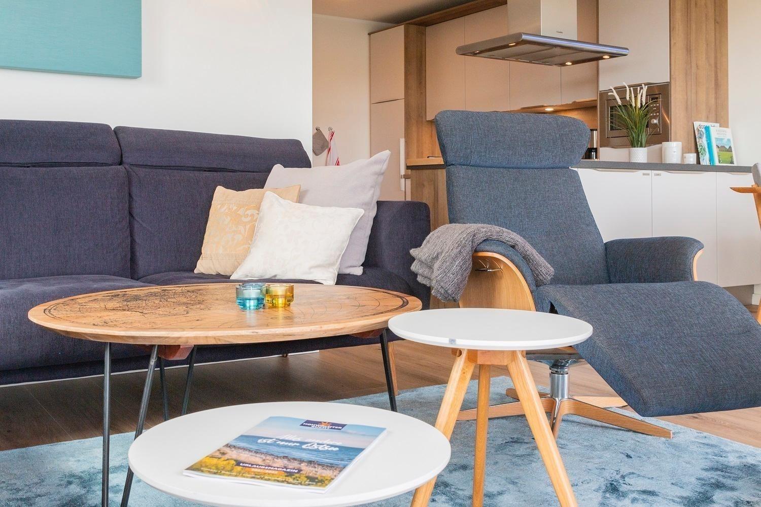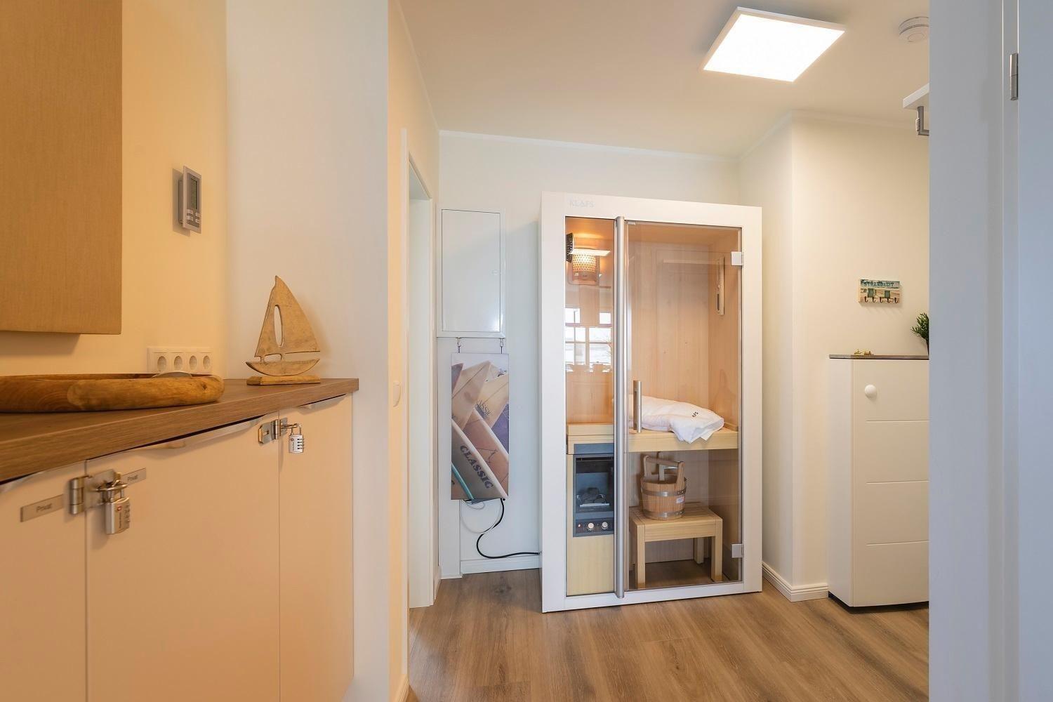 Die Ferienwohnung „Schöne Aussicht“ bietet Platz für vier Personen und beeindruckt mit einem unvergleichlichen Blick auf den weißen Sandstrand und die Ostsee. Der helle Wohnraum mit großer Fensterfront lädt mit einem gemütlichen Sofa, einem Esstisch und einem großen Fernseher zur Entspannung ein. Die offene Küche ist modern gestaltet und vollständig ausgestattet, einschließlich Induktionsherd, Backofen, Kühlschrank mit Gefriervöglichkeit, sowie Geschirrspüler. Zwei Schlafzimmer mit en Suite Duschbädern, Ruf Boxspringbetten und Fernsehern garantieren Komfort. Die bodentiefen Duschen sind mit Glastüren versehen und bieten moderne Annehmlichkeiten wie Handtuchwärmer. WLAN ist verfügbar, und eine Sauna ergänzt das Angebot. Ein Fahrstuhl im Haus sowie ein eigener Stellplatz sorgen für zusätzlichen Komfort.