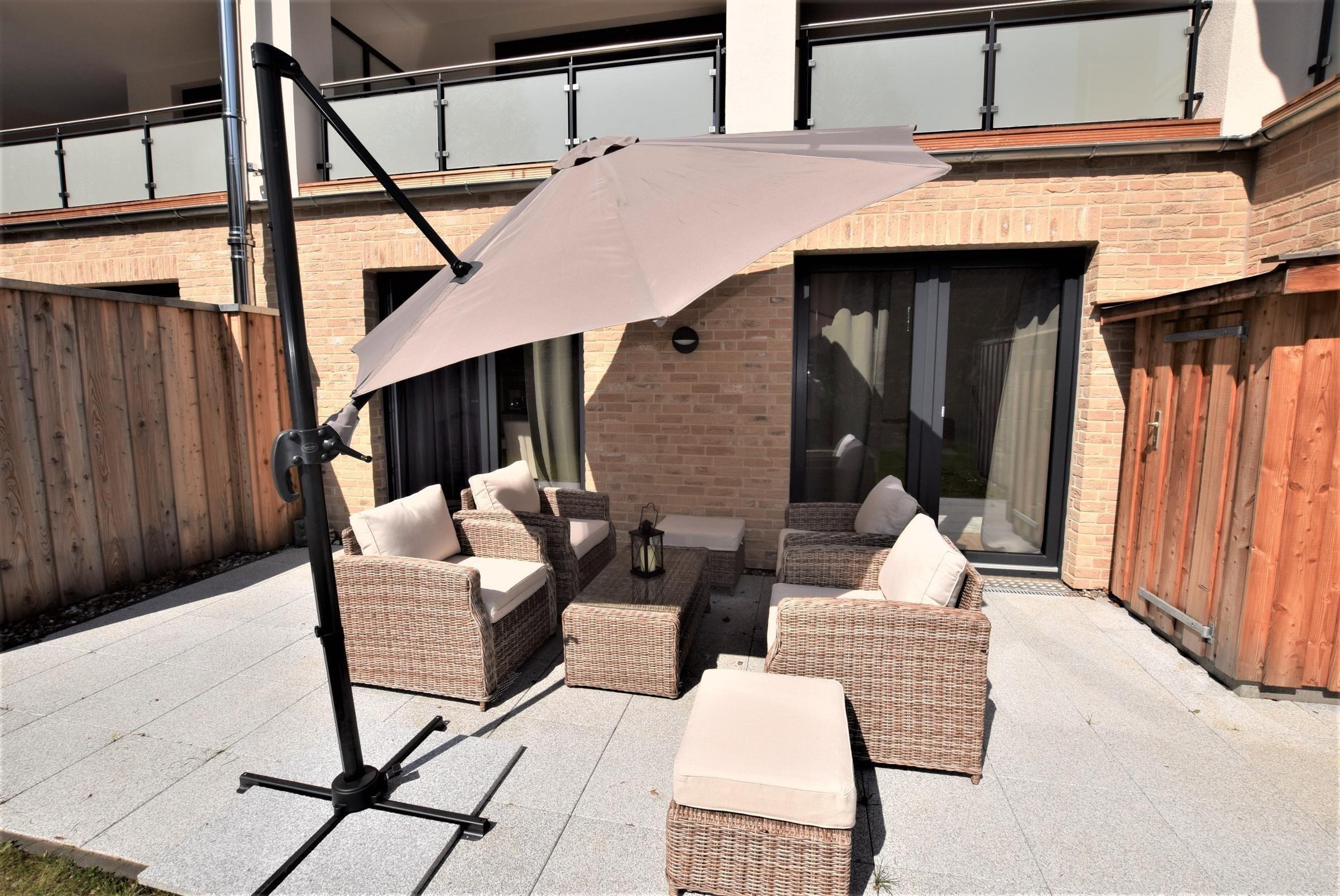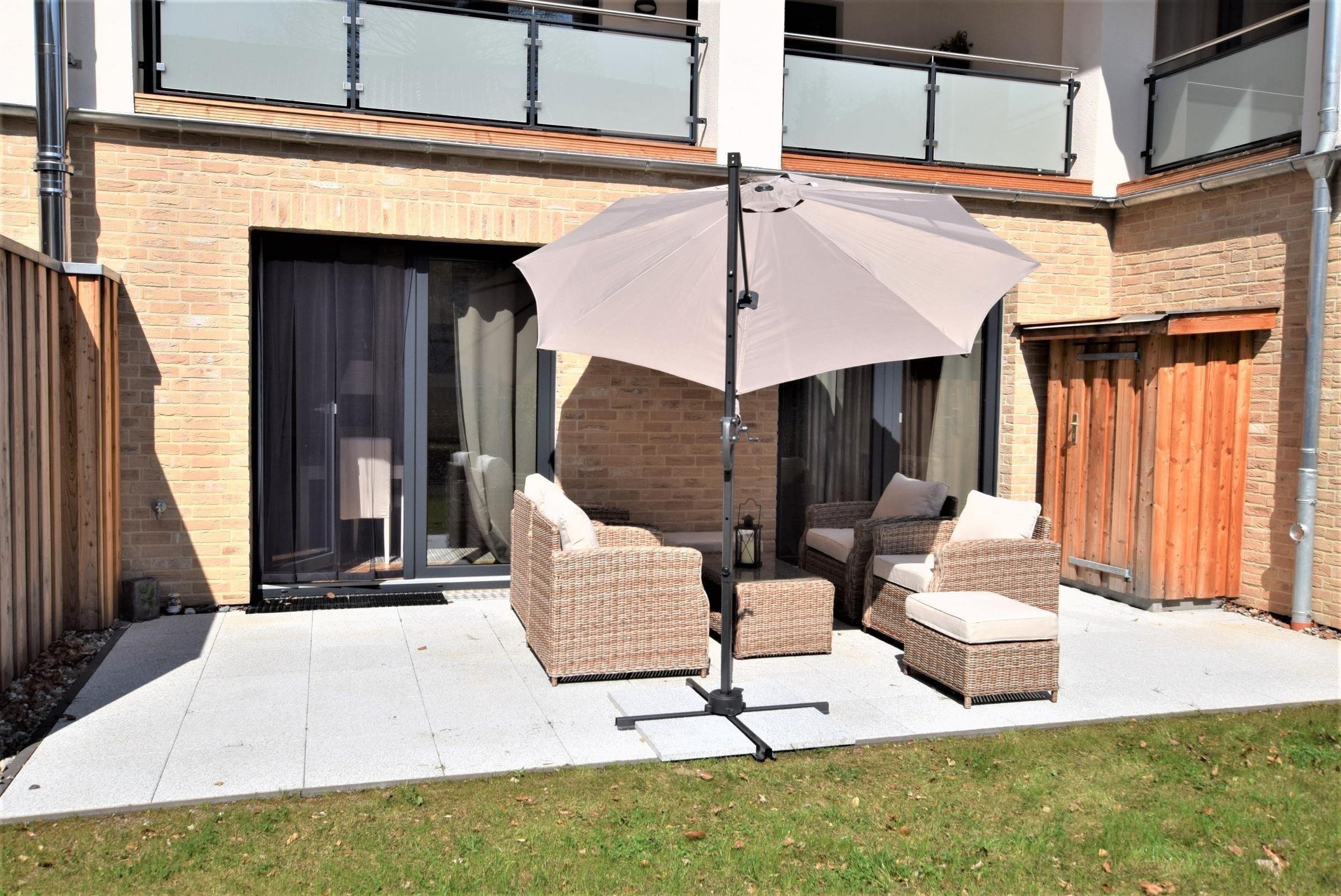 Das Vermittlungsportal präsentiert eine traumhafte Ferienwohnung an der Ostsee, die im Jahr 2017 erbaut wurde und sich in zentraler Lage befindet. Der großzügige Außenbereich umfasst eine 30 qm große Südterrasse, ausgestattet mit Gartenmöbeln und einem Grill, ideal für entspannte Stunden im Freien. Zudem können Gäste den gemeinschaftlich nutzbaren Strandkorb am Objekt nutzen. Fahrradstellplätze sind direkt auf dem Grundstück verfügbar. Familien mit Kindern finden in der Nähe einen Abenteuerspielplatz, der nur etwa 200 Meter entfernt ist. Nur 300 Meter trennen die Gäste vom Strand, und frische Brötchen können im Backshop des Edeka-Marktes, ebenfalls nur 200 Meter entfernt, erworben werden. Die Lage der Wohnung ermöglicht es, zahlreiche Restaurants bequem fußläufig zu erreichen. Alle Nebenkosten sind inklusive, mit Ausnahme von Endreinigung und Wäsche.