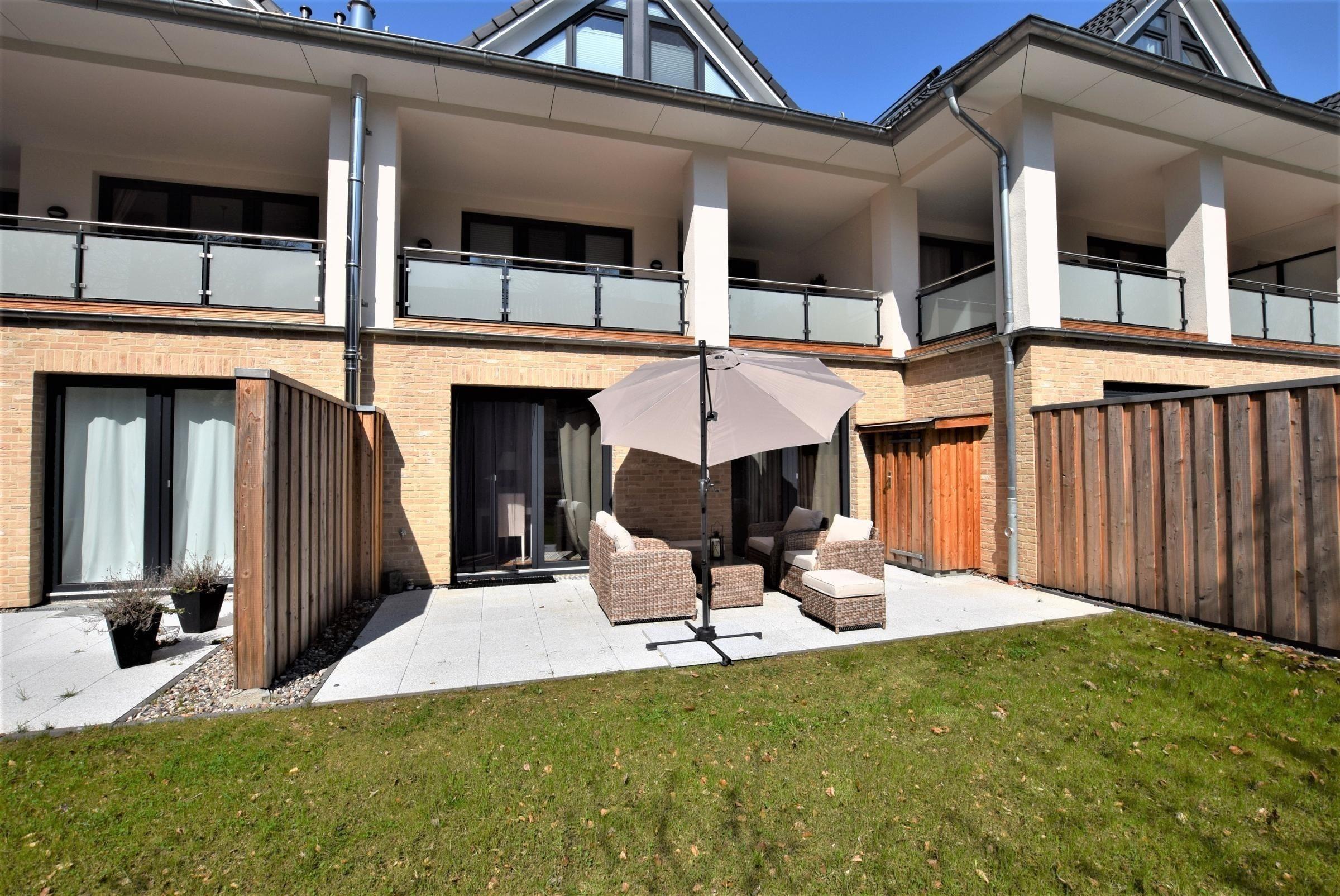 Die ideale Unterkunft für bis zu 4 Personen bietet eine zentrale Lage, nur 300 Meter vom Strand entfernt, mit einer Südterrasse, modernem Wohnbereich und kinderfreundlichem Abenteuerspielplatz in der Nähe.