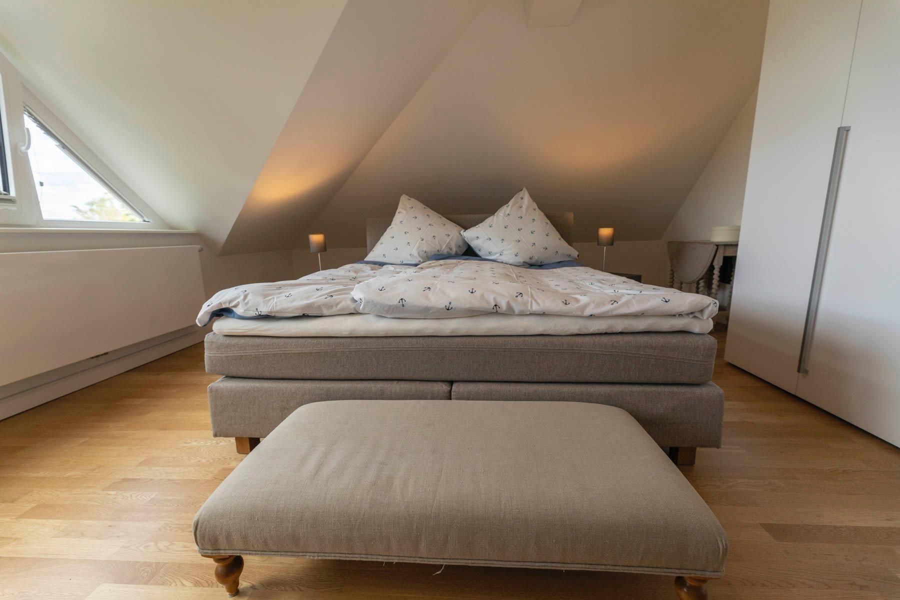 Die Traumwohnung Strandkrabbe bietet auf 100 m², verteilt auf zwei Ebenen (1. Obergeschoss und Dachgeschoss), Platz für 2 bis 6 Personen. Die hochwertig ausgestatteten Räume überzeugen durch Parkett- und Fliesenböden. Das Wohnzimmer verfügt über einen TV mit Netflix und einen integrierten Essbereich sowie eine Einbauküche. Die Küche ist mit einem Geschirrspüler, Induktionsherd, Dunstabzugshaube, Backofen, Kühlschrank mit Gefrierfach, Kaffeemaschine, Toaster und Wasserkocher ausgestattet. Es stehen zwei Duschbäder mit WC zur Verfügung, die in den oberen Etagen liegen. Die Schlafzimmer bieten komfortable Doppelbetten (Boxspring) und Stauraum. Für Familien gibt es ein zusätzliches Zimmer mit Einzelbett, Schlafcouch und Spielecke. WLAN ist ebenfalls vorhanden. Bettwäsche und Handtücher können auf Wunsch gegen Gebühr bereitgestellt werden.