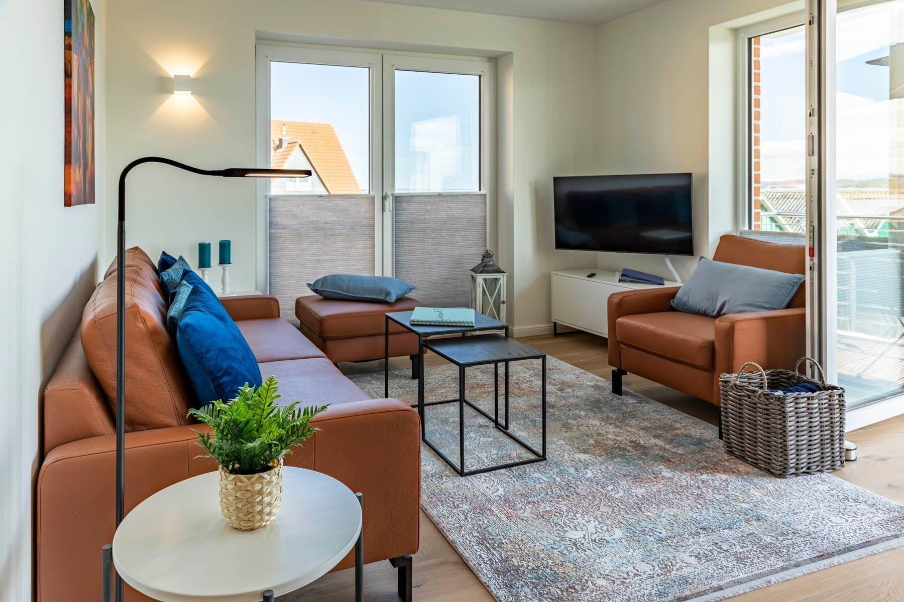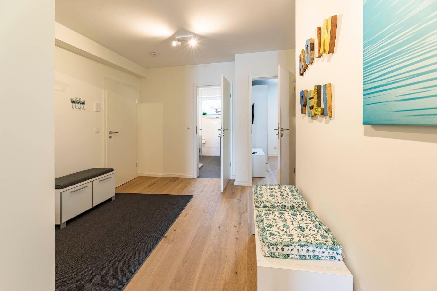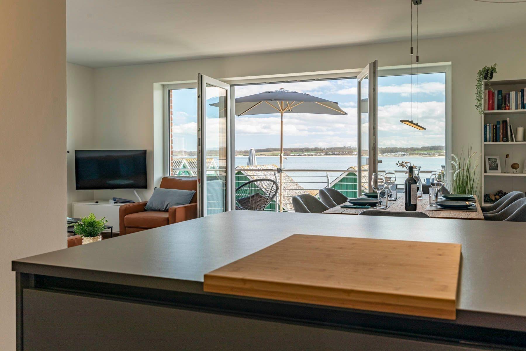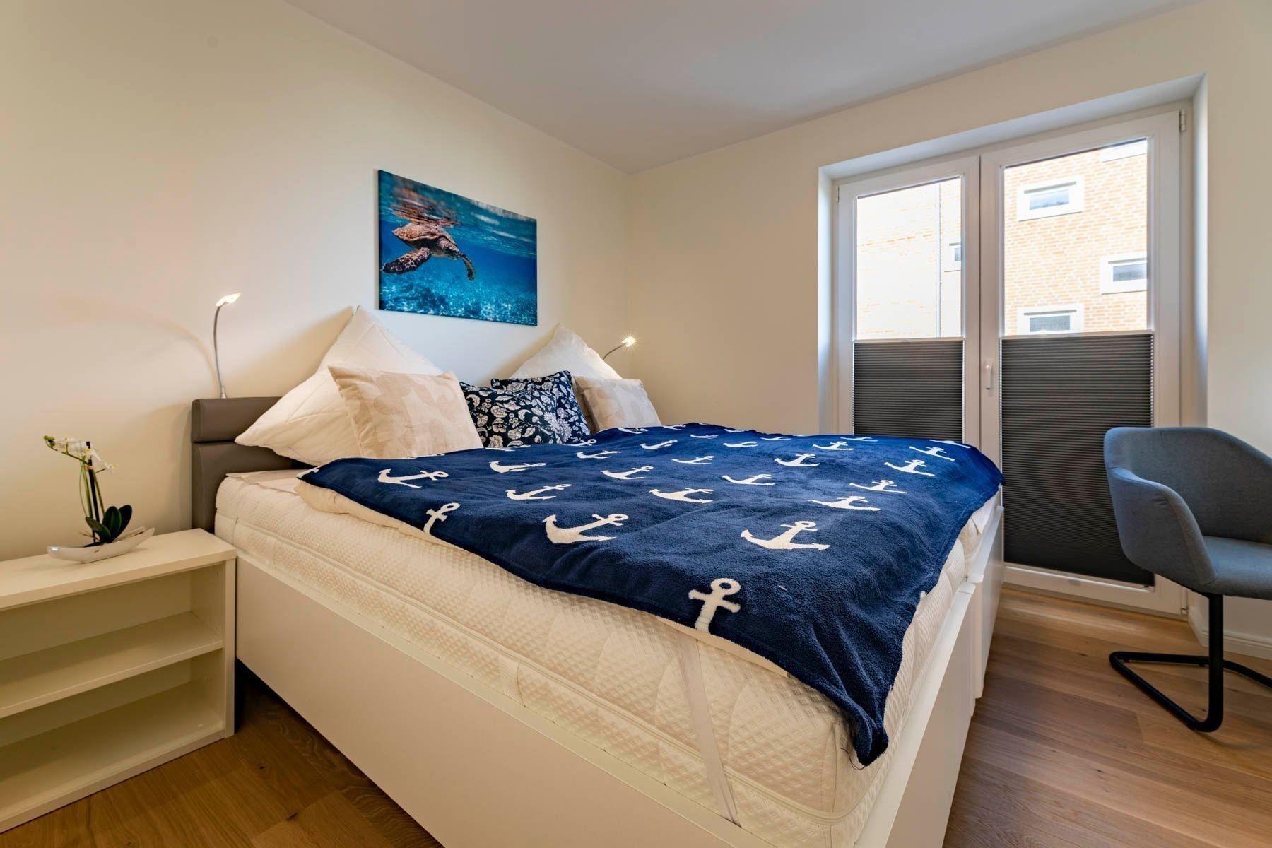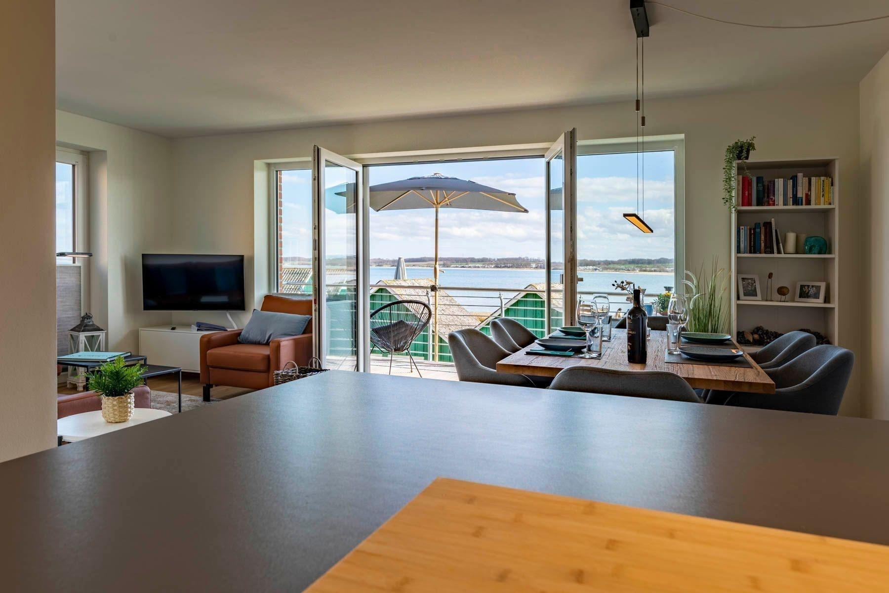 Die Ferienwohnung „Pelikan“ im 1. Obergeschoss des Hauses "Meeresblick" bietet einen herrlichen Ausblick und ist für bis zu sechs Personen ausgelegt. Der Wohn- und Essbereich besticht durch große Glastüren, die auf den Balkon führen, während ein Ledersofa und ein Flachbildfernseher zum Verweilen einladen. Die voll ausgestattete Küche verfügt über eine Geschirrspülmaschine, ein Induktionskochfeld, einen Backofen und einen Kühlschrank mit Gefriermöglichkeit. Die Schlafzimmer sind mit Boxspringbetten und großzügigen Kleiderschränken ausgestattet. Zudem gibt es zwei moderne Bäder mit Dusche/WC und ausreichend Stauraum. WLAN ist kostenlos verfügbar. Zur Unterkunft gehört ein fester Parkplatz sowie ein separater Raum für Fahrräder. Ein Fahrstuhl erleichtert den Zugang zur Wohnung. Haustiere sind willkommen, und die Wohnung ist eine Nichtraucherunterkunft.