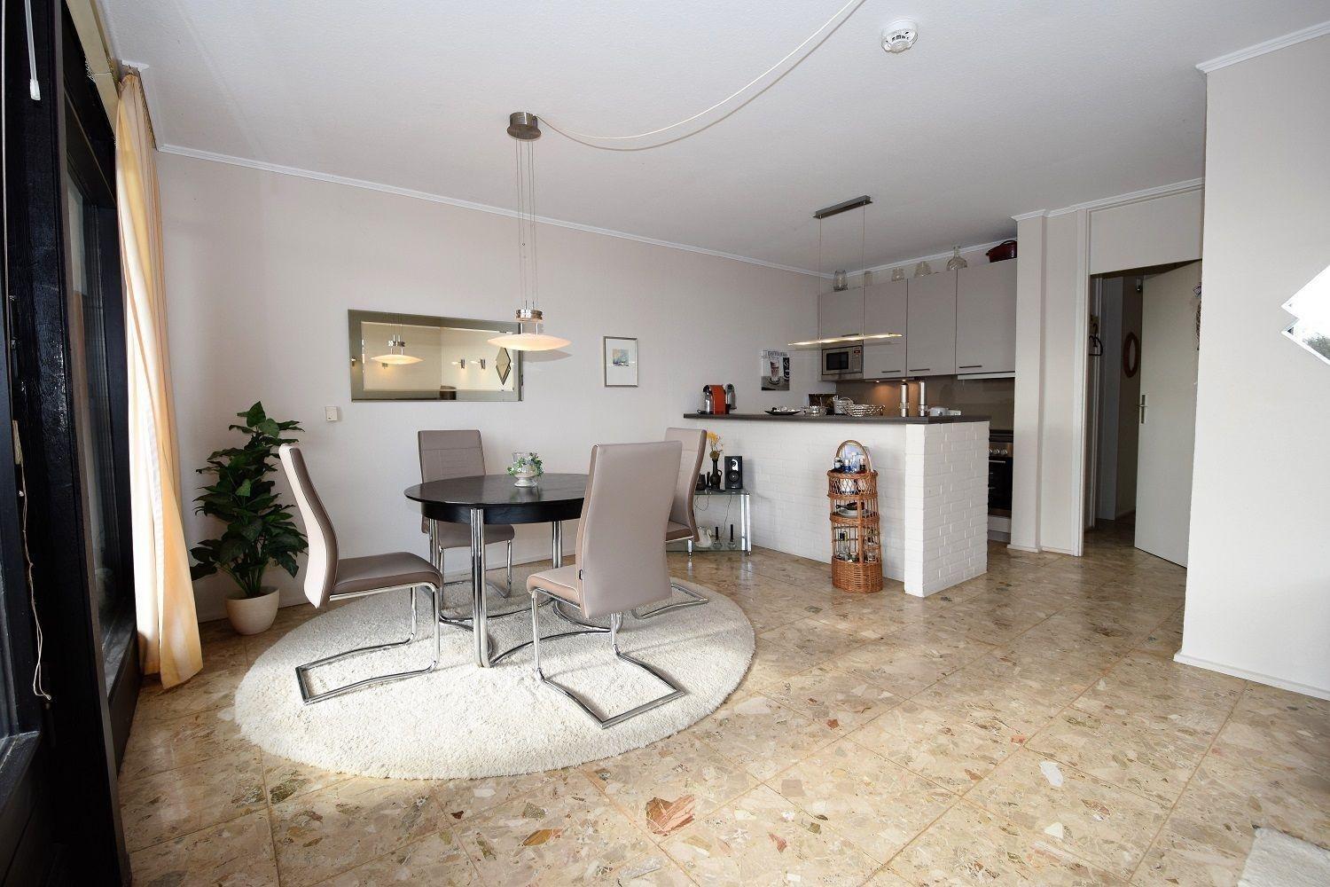 Die Ferienwohnung "Küstenglück" in Hohwacht erstreckt sich über 65 Quadratmeter und bietet Platz für bis zu 4 Personen. Der große Wohn- und Essbereich lädt mit seiner hellen Atmosphäre zum Entspannen und gemeinsamen Essen ein. Eine moderne Küche ist integriert, die das Zubereiten von Mahlzeiten in geselliger Runde erleichtert.