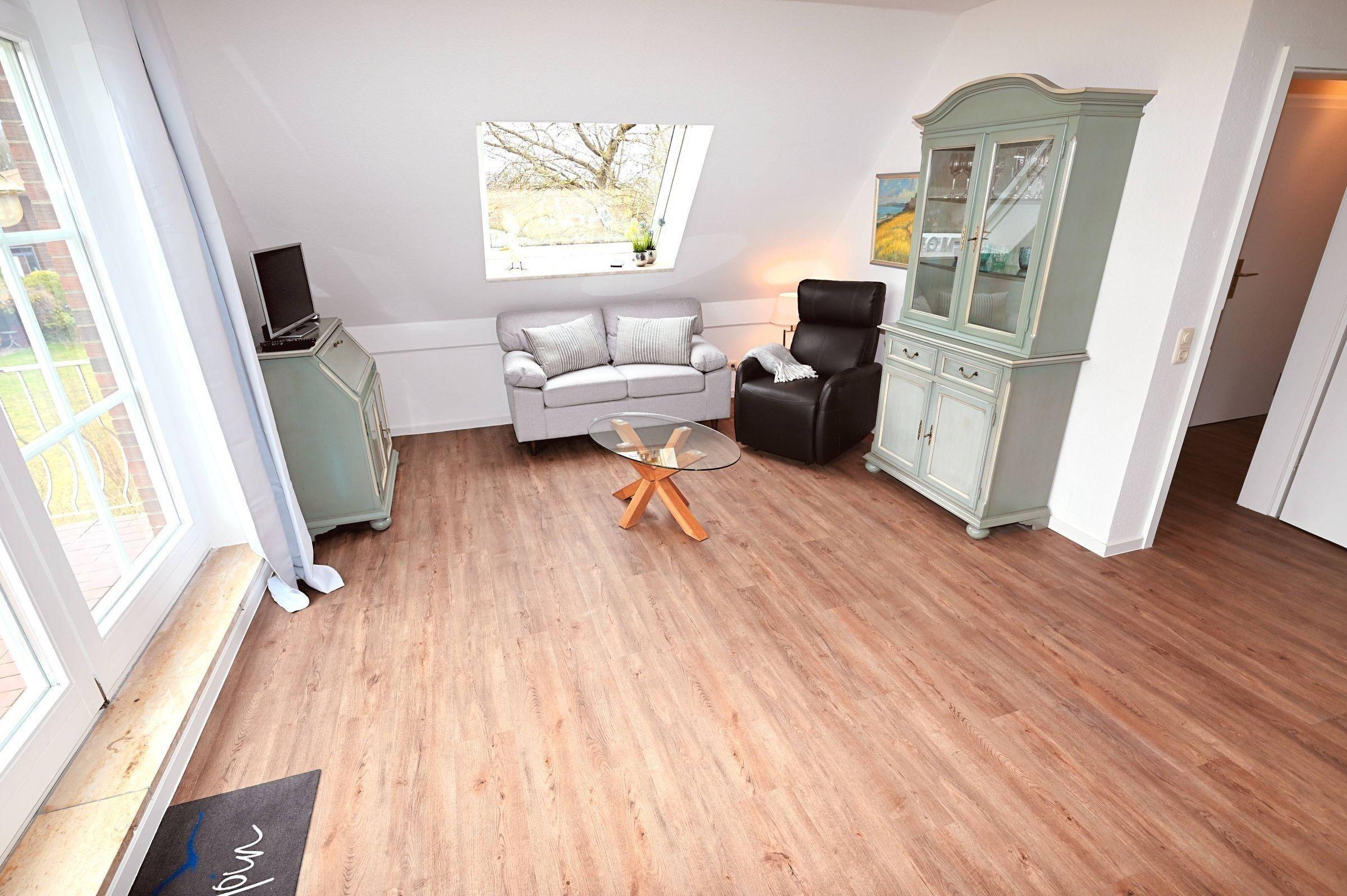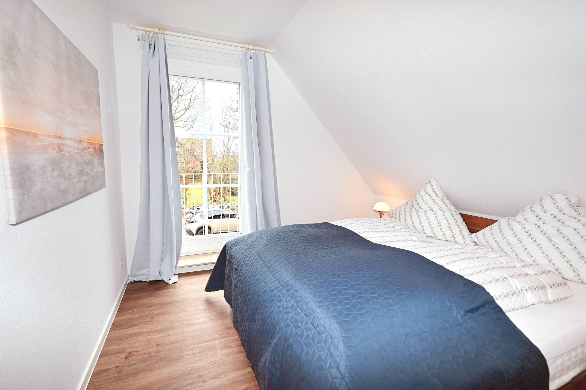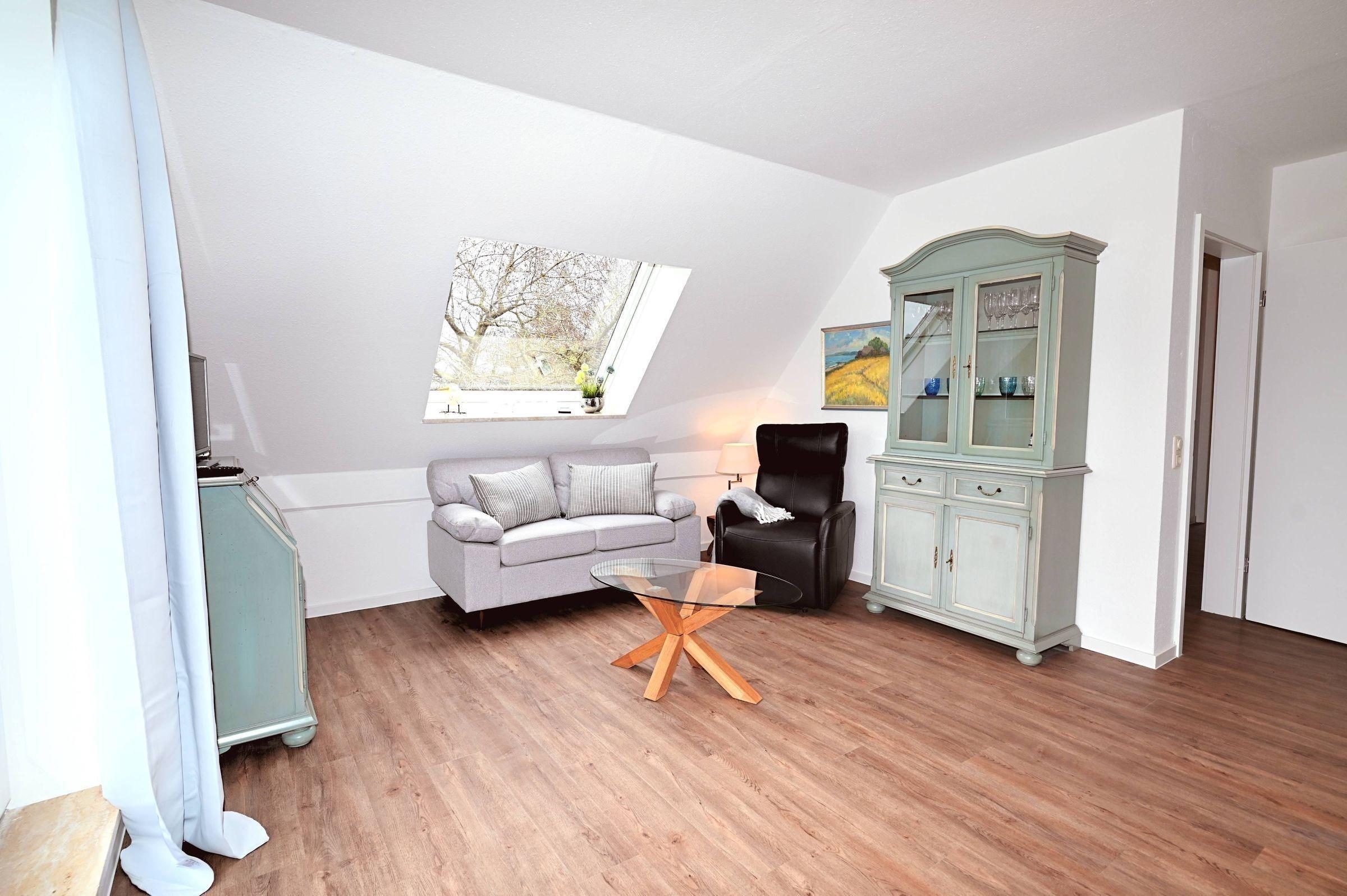 Die 3-Zimmer-Ferienwohnung bietet Platz für bis zu 4 Personen und überzeugt durch lichtdurchflutete Räume sowie hochwertige Ausstattung. Der offene Wohn- und Essbereich mit integrierter Küche ist mit einem Backofen, Mikrowelle, Kühlschrank mit Gefrierfach, Kaffeemaschine, Wasserkocher und Herd ausgestattet. Der einladende Wohnbereich umfasst ein gemütliches Sofa und einen bequemen Sessel. Die beiden Schlafzimmer sind mit komfortablen Doppelbetten, geräumigen Kleiderschränken und Verdunkelungsgardinen ausgestattet. Das moderne Badezimmer bietet eine ebenerdige Regendusche, WC, großen Spiegel und Tageslicht durch ein Veluxfenster. Für zusätzlichen Stauraum sorgen die großzügigen Schubladen unter dem Waschbecken. Eine Waschmaschine zur gemeinschaftlichen Nutzung ist im Keller des Hauses verfügbar. WLAN steht ebenfalls zur Verfügung. Ein Parkplatz befindet sich direkt vor dem Haus. Hunde sind nicht gestattet.