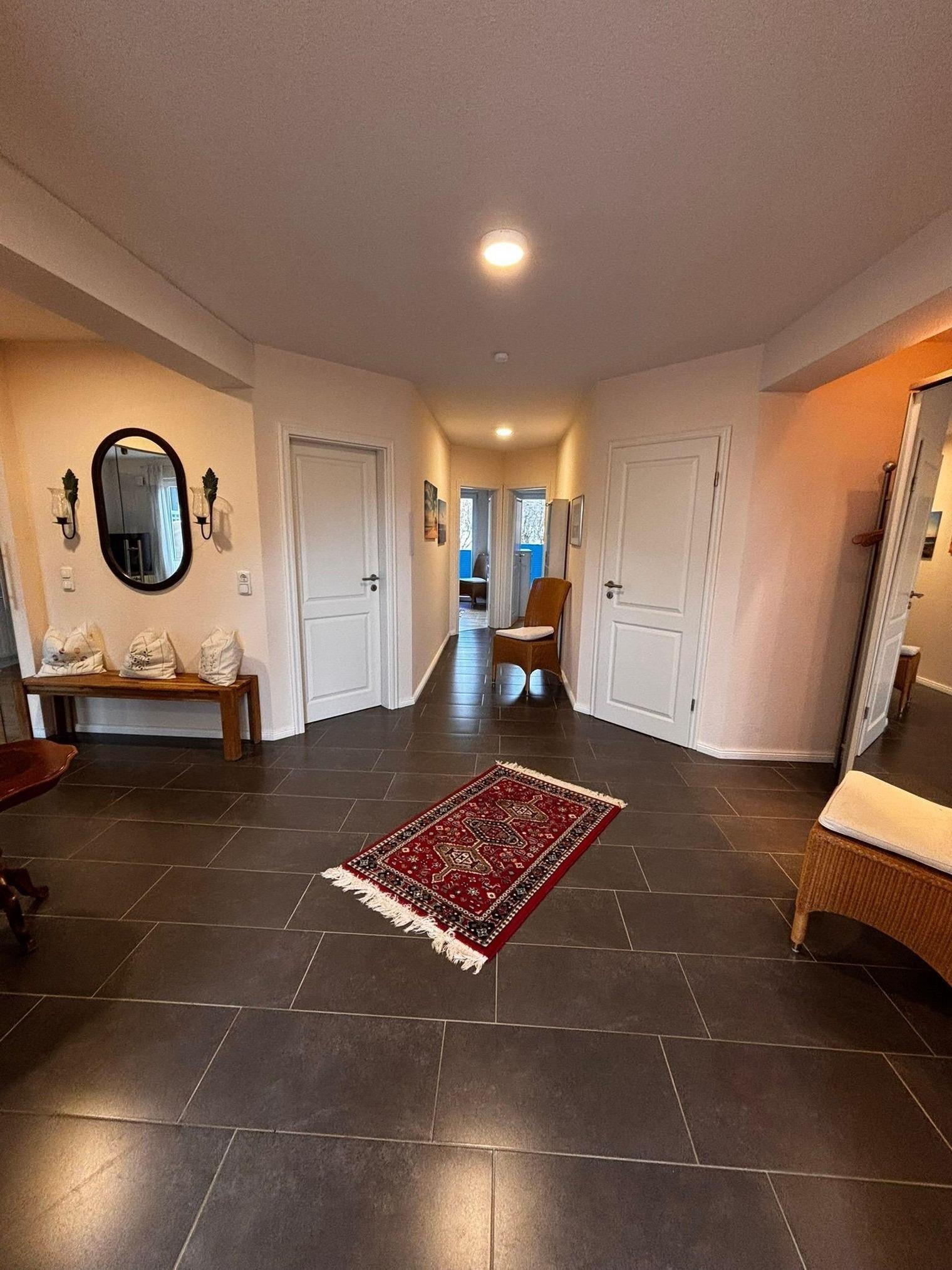 Erich's Nest ist eine großzügige Ferienunterkunft in Hohwacht, die eine Fläche von 117 m² bietet und Platz für bis zu 6 Personen (4 Erwachsene, 2 Kinder) bietet. Die Wohnung verfügt über 3 Schlafzimmer und 2 Badezimmer, die durch einen offenen Wohnbereich mit einer voll ausgestatteten Küche verbunden sind. Zur modernen Küche zählen ein Ceranherd, ein Backofen, eine Mikrowelle und ein Geschirrspüler. Im einladenden Wohnzimmer sorgt ein großer Flachbildfernseher für Unterhaltung. Die Unterkunft ist als Nichtraucherhaus konzipiert und Haustiere sind bis zu zwei Hunden erlaubt. WLAN mit über 100 Mbit/s ermöglicht einen konstanten Internetzugang, während eine hauseigene Waschmaschine zusätzlichen Komfort bietet. Einkaufsmöglichkeiten und Restaurants sind in wenigen Minuten erreichbar, was den Aufenthalt noch angenehmer macht.