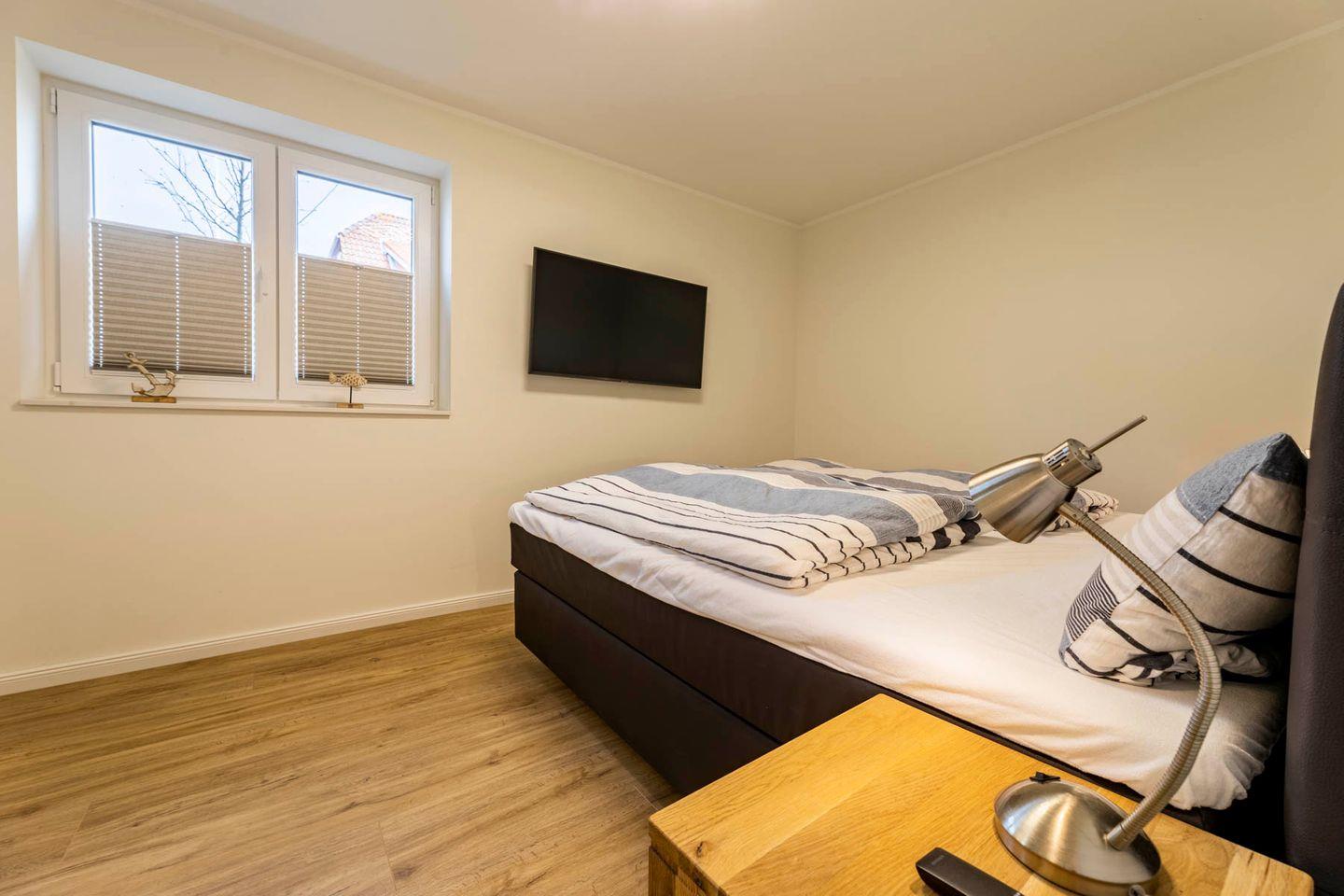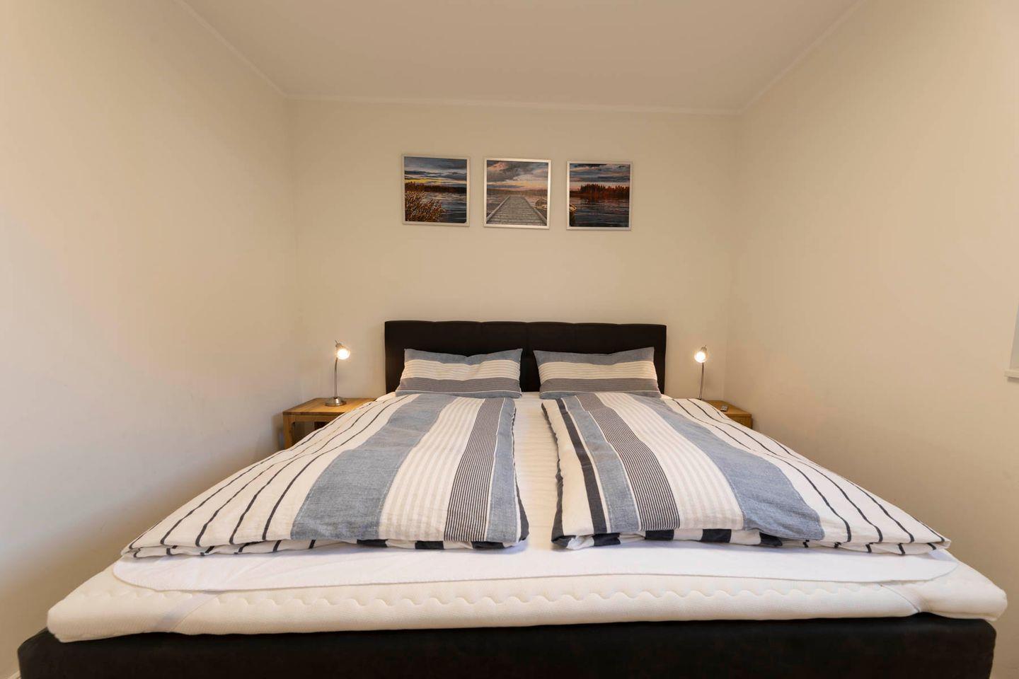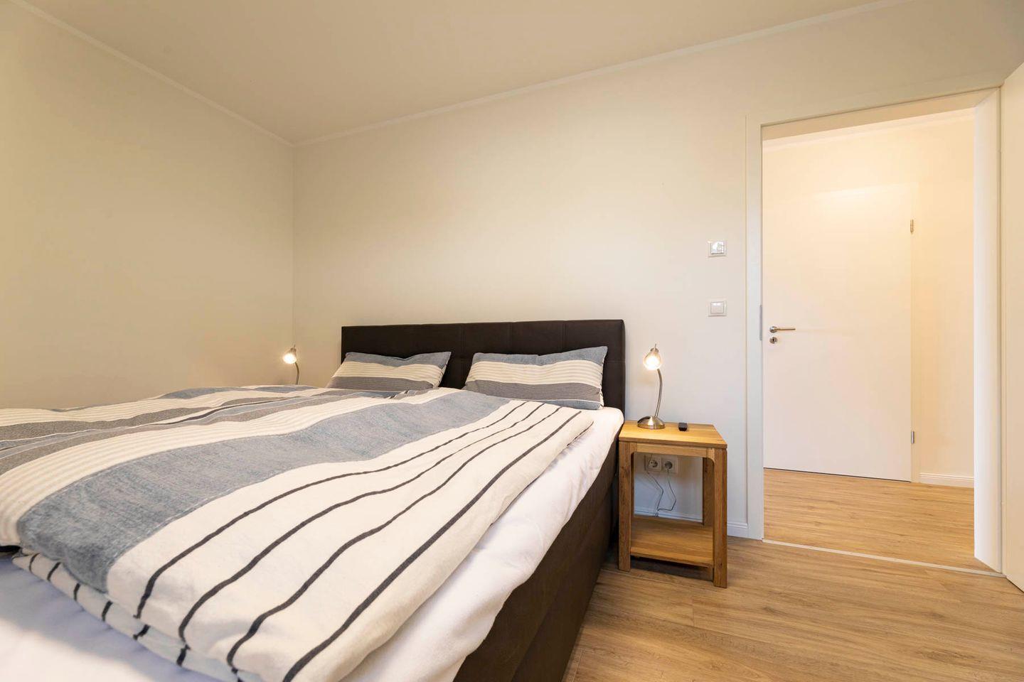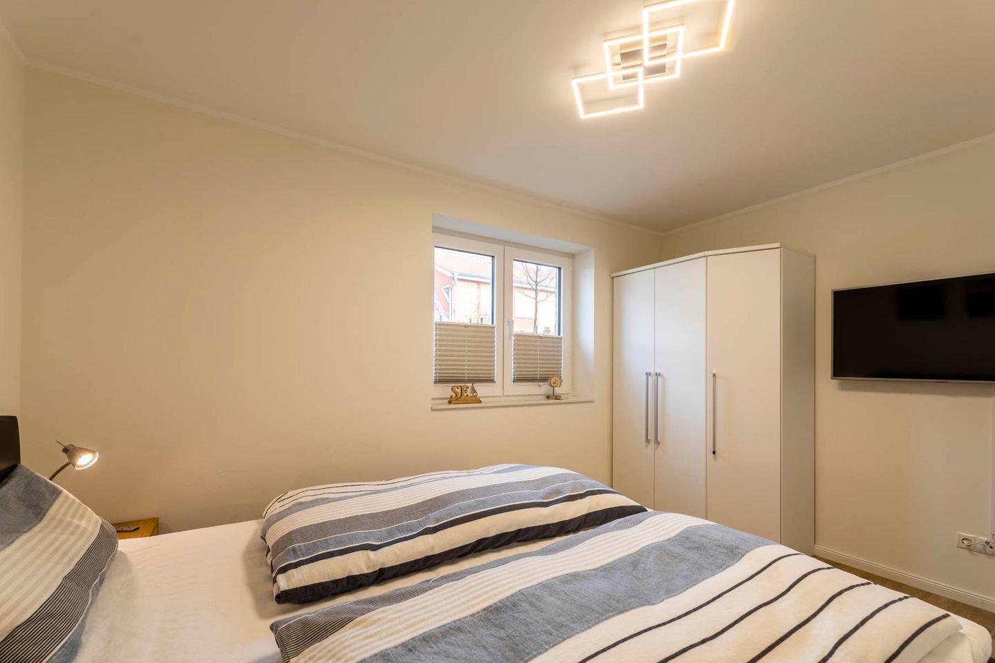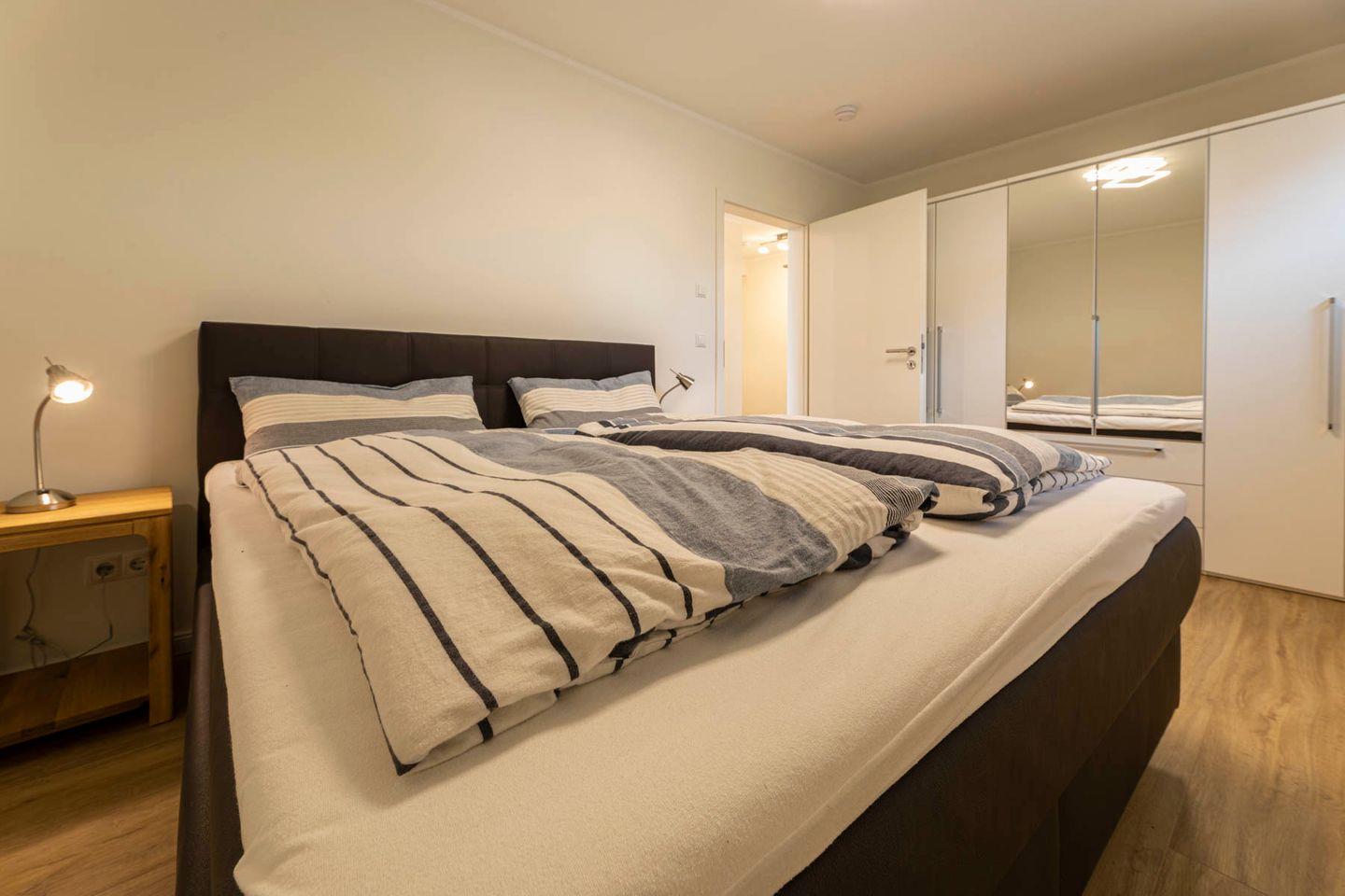 Die zwei Schlafzimmer mit großen Fenstern sind besonders hell, mit Doppelbetten, und geräumigem Kleiderschränken.