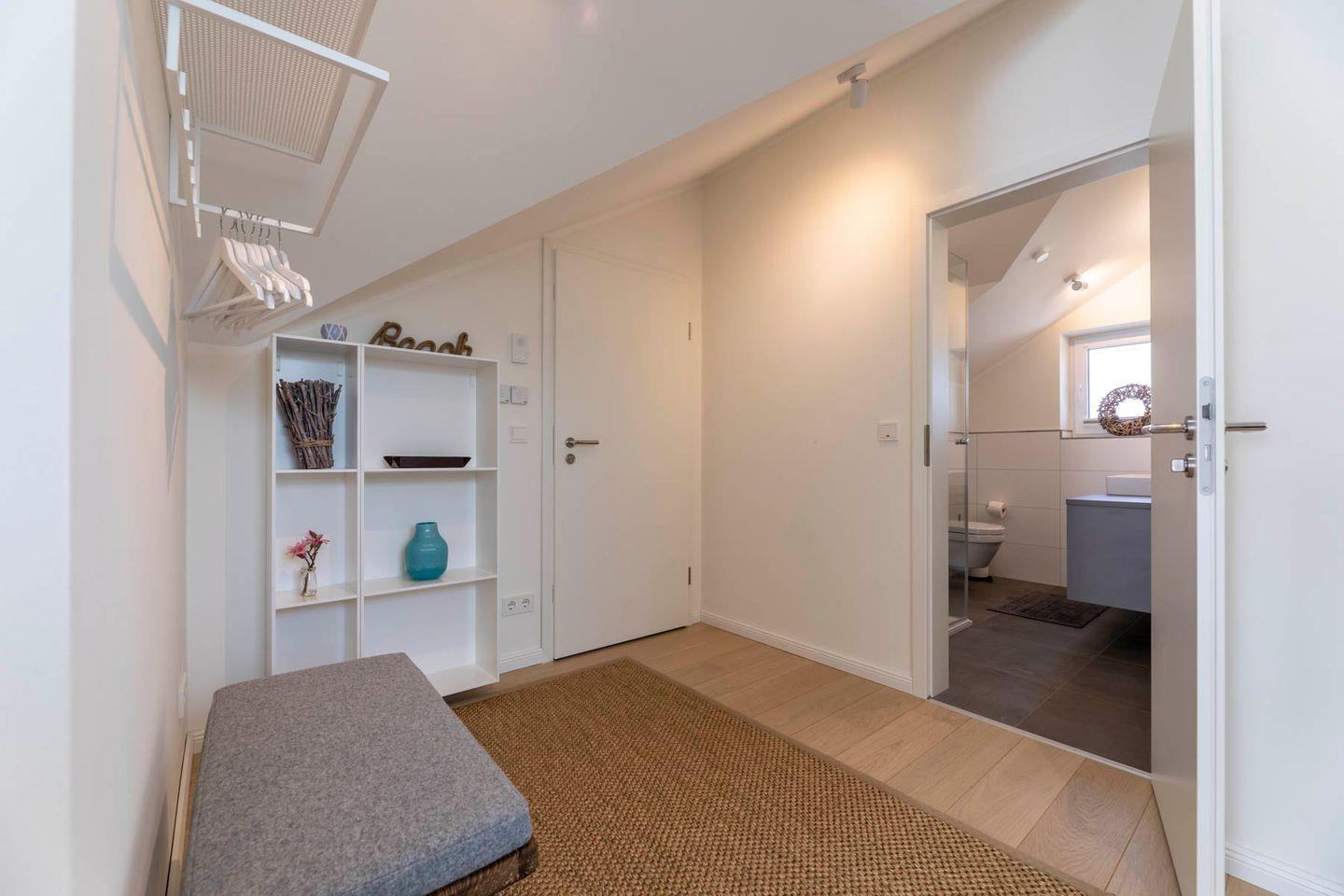 Jedes der drei Schlafzimmer ist mit hochwertigen Betten und einem Einbauschrank ausgestattet. Zwei Schlafzimmer besitzen jeweils ein Doppelbett und einen Fernseher. In dem dritten Schlafzimmer befinden sich zwei Einzelbetten, die sich vor Beginn Ihres Besuchs zu einem Bett oder zu einer Couch stapeln lassen. Das Zimmer bietet dann mehr Platz zum Spielen oder kann, da es auch über einen Schreibtisch verfügt, als ruhiges Büro genutzt werden. Bitte teilen Sie uns vor Beginn Ihres Urlaubs mit, wie Sie das Zimmer am liebsten nutzen möchten.