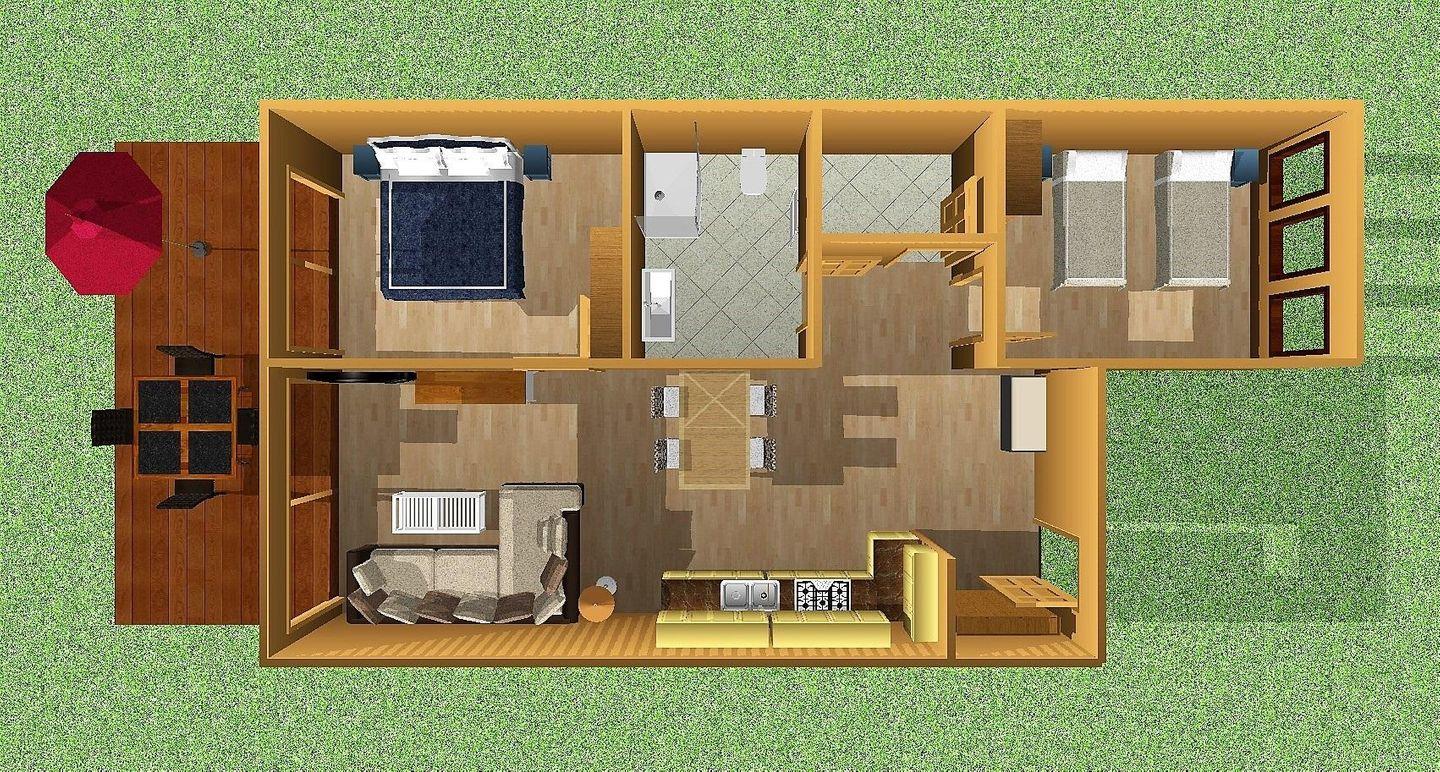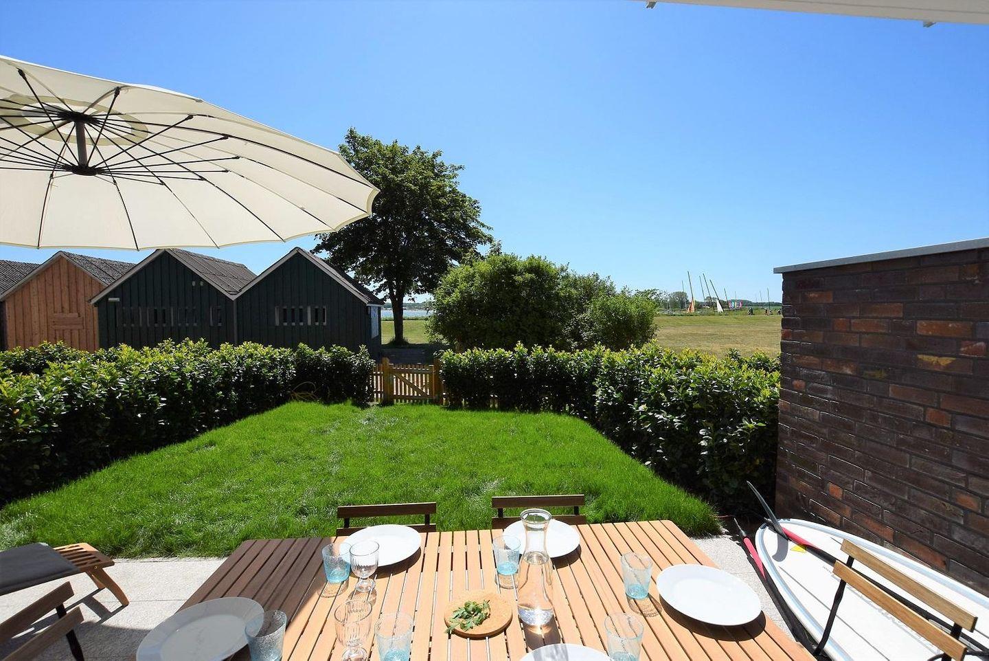 Die Wohnung liegt im Erdgeschoss eines Ferienhauses in direkter Strandlage. Drei Zimmer verteilen sich auf insgesamt 74 qm.