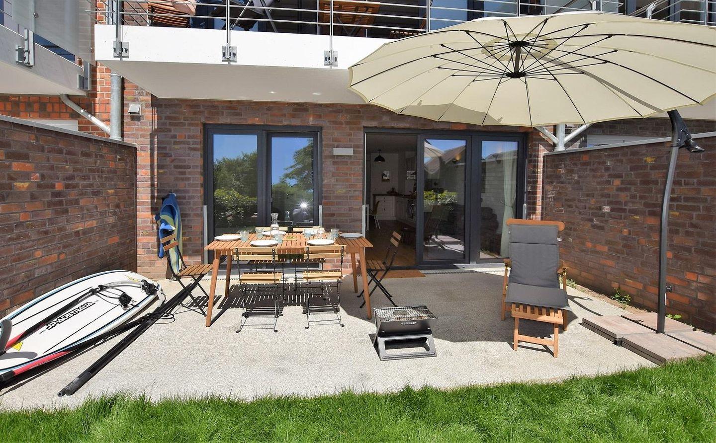 Diese große, moderne Ferienwohnung „ Beachstart“ punktet nicht nur mit Blick über die Ostsee und den weißen Sandstrand, sondern auch mit einer umfangreichen Ausstattung, viel Platz und einer schönen, möblieten Terrasse. Eigener Stellplatz für 1 PKW. Im Nebenhaus stehen Ihnen 2 Fahrradabstell-Plätze zur Verfügung.