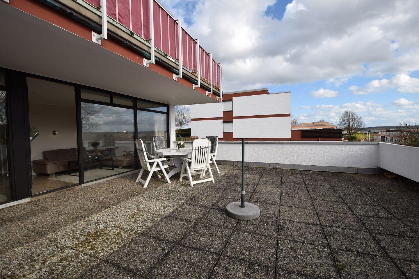 Das Highlight der Ferienwohnung "Küstenglück" ist zweifelsohne die großzügige Dachterrasse, auf die Sie durch eine imposante Fensterfront gelangen. Hier können Sie in Ruhe Ihren Morgenkaffee genießen, den grandiosen Blick in die Umgebung schweifen lassen und den Abend bei einem Glas Wein ausklingen lassen.