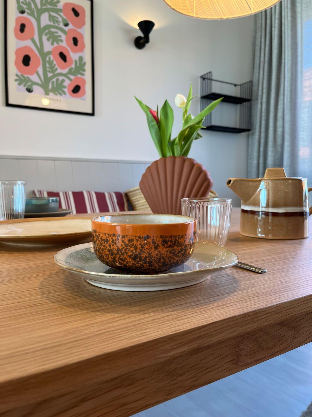 Außerdem hat die Ferienwohnung kostenloses schnelles WLAN, einen Smart-TV und eine komplette Küchenausstattung. Die Inneneinrichtung vereint natürliche Materialien, wunderschöne Farbtöne und zeitloses Design. Ein intelligentes Schließsystem mit PIN-Code macht den Check-In flexibel. Jedes Apartment verfügt außerdem über zusätzlichen Stauraum im Keller.