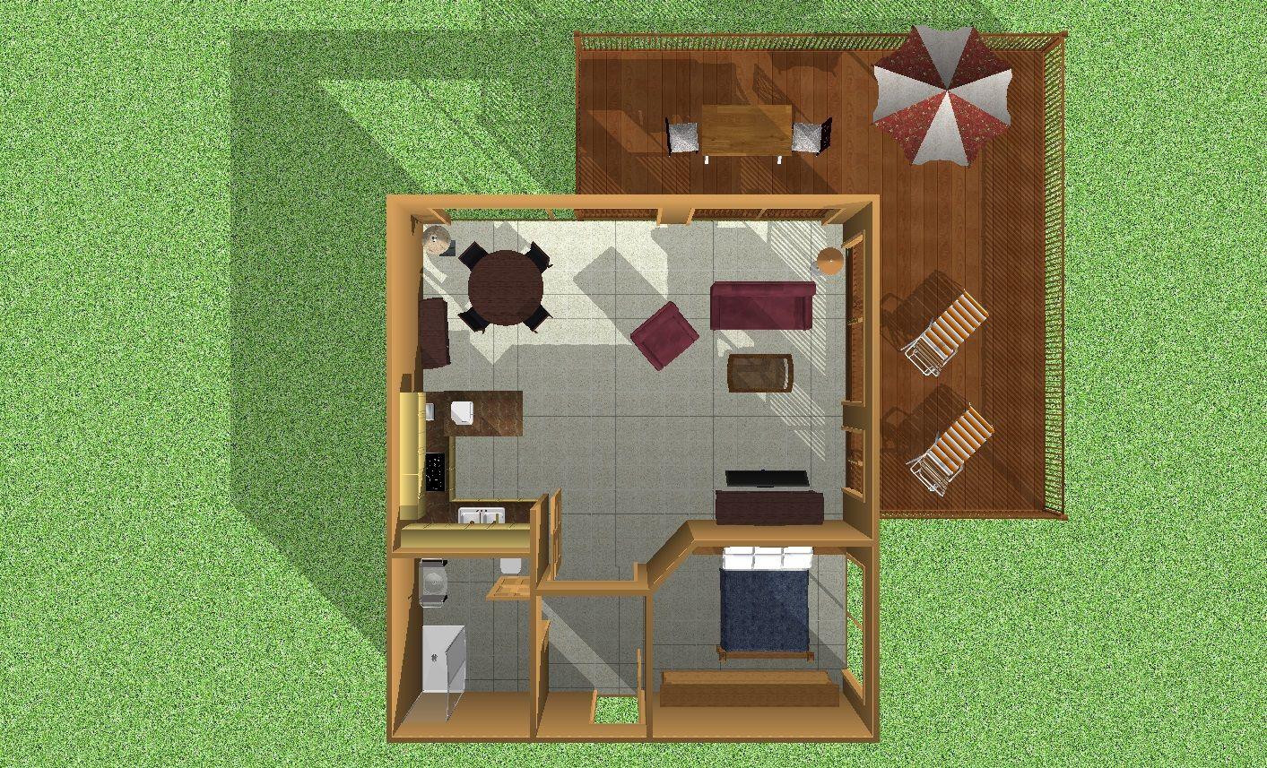 Der separate Schlafraum mit gemütlichem Doppelbett und großzügigem Kleiderschrank verspricht erholsame Nächte. Im lichtdurchfluteten Wohnbereich erwartet Sie ein modernes Interieur mit Kabel-TV und WLAN – perfekt für entspannte Stunden.