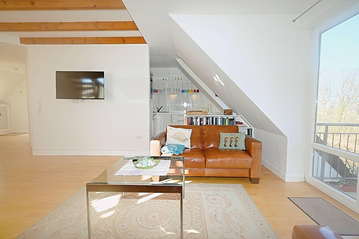 Appartement Moin! ist eine großzügige 85 m² Unterkunft im 1. Stock für bis zu 3 Personen. Zwei Schlafzimmer, ein Wohnbereich mit Sofaecke und Essplatz sowie eine offene Küche mit Backofen, Ceranfeld und Spülmaschine bieten angenehmen Komfort. Der überdachte Balkon mit Gartenmöbeln lädt zum Verweilen ein, dazu stehen WLAN, TV, Sauna gegen Gebühr und Ruheraum ( beides zur Gemeinschaftsnutzung und ein Privatparkplatz zur Verfügung.