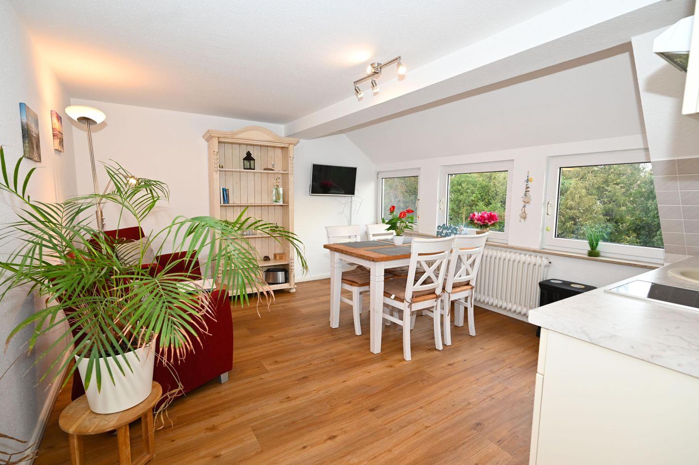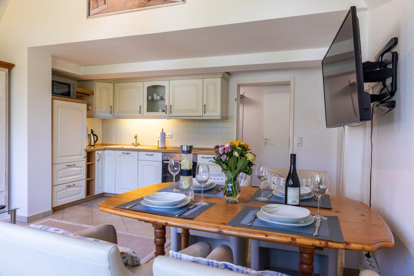 Des Weiteren finden Sie dort 2 Wohn- & Essbereiche mit jeweils einer offenen Küche vor, welche zum Entspannen einladen. In beiden Räumlichkeiten befindet sich ein TV. Selbstverständlich finden Sie 2 Badezimmer vor.