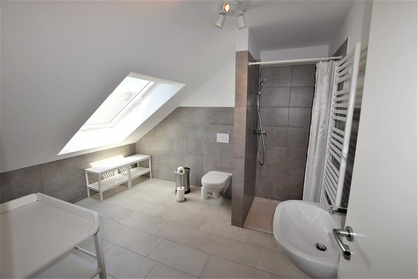 Zwei moderne Bäder mit Dusche und WC runden den Komfort für alle Bewohner des Hauses ab. Das große Bäder ist sogar mit einer praktischen Wickelauflage ausgestattet, die Familien mit kleinen Kindern besonders zu schätzen wissen werden.