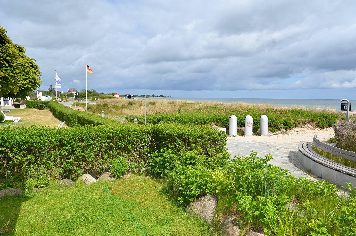 Hunde sind herzlich willkommen, der Hundestrand ist nur 2 Gehminuten entfernt.