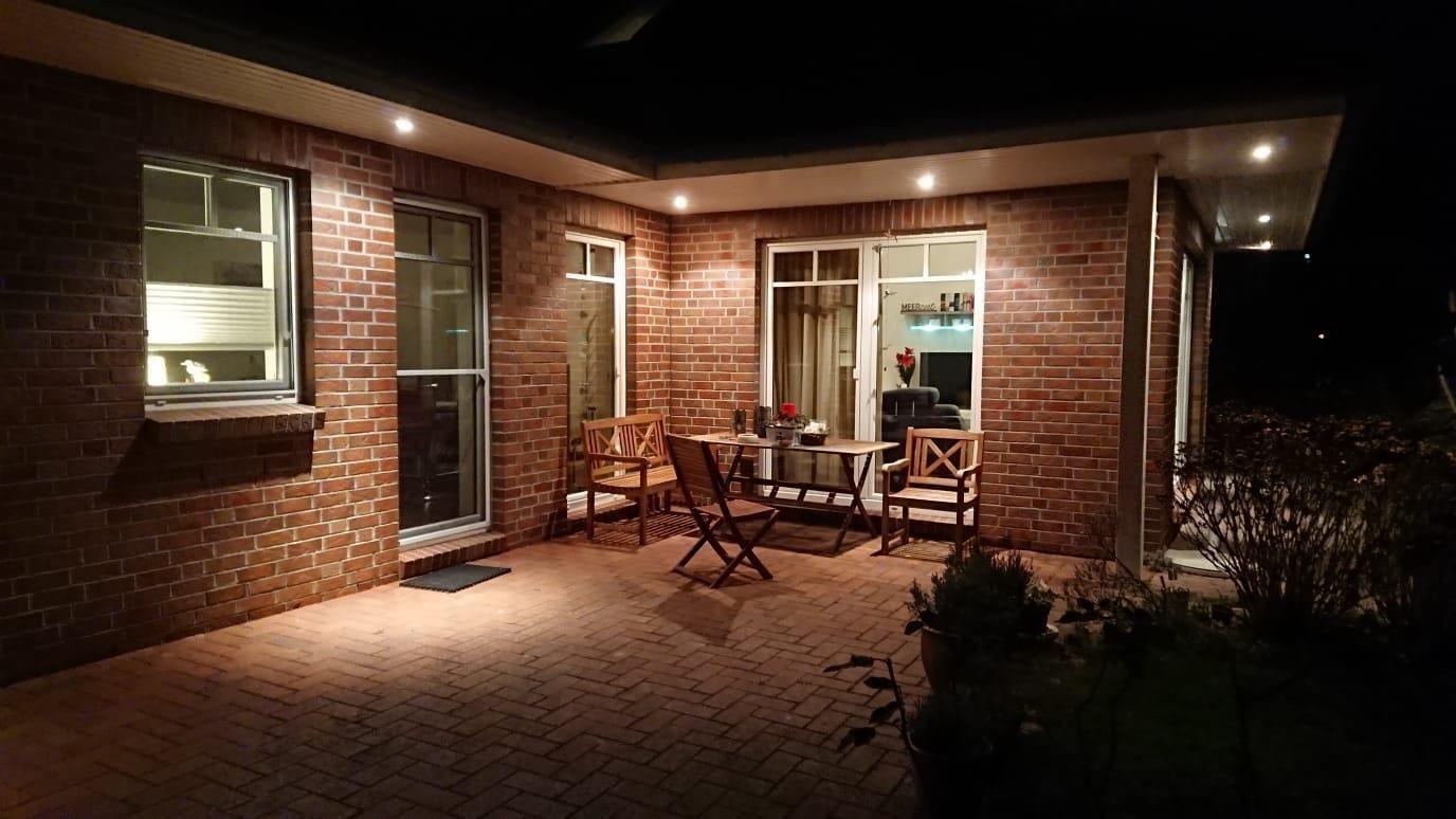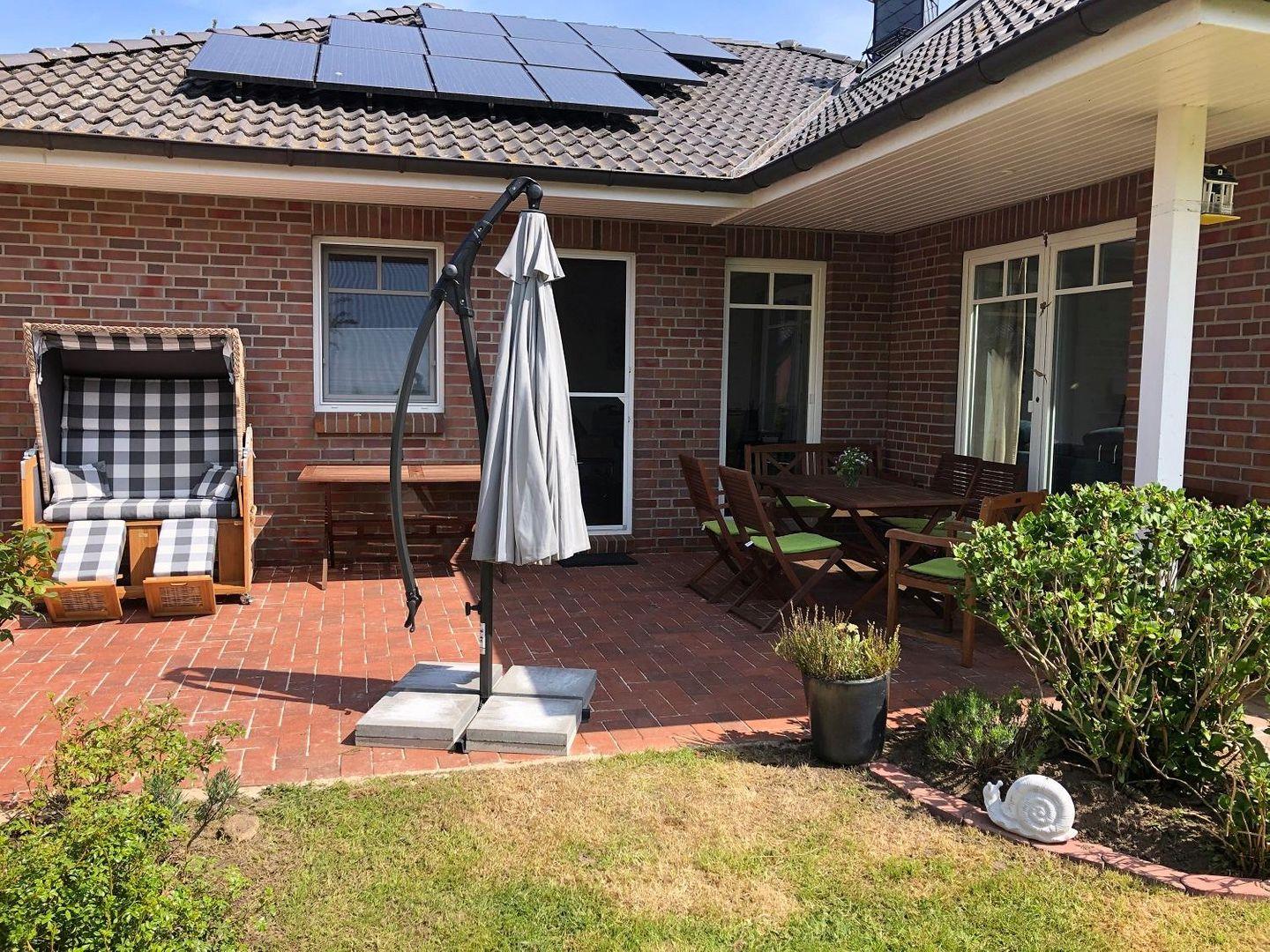 Die Terrasse ist einladend gestaltet und ansprechend möbliert. Ein Strandkorb darf im Ostseeurlaub natürlich nicht fehlen und hat seinen Platz auf der Terrasse. Baumbestand, eine Liegewiese und die Nutzungsmöglichkeit für einen Grill vervollständigen den paradiesischen Außenbereich als eine Oase der Entspannung. Der Garten selbst wird von Hecken und Zaun umrahmt. So können sich auch kleinere Kinder im Außenbereich aufhalten und in der Sandmuschel spielen. Ihre Vierbeiner können sich im umzäunten Grundstück ebenfalls frei bewegen. Zwei PKW-Stellplätze befinden sich direkt auf dem Grundstück. Bewegungsmelder mit Beleuchtung lassen Sie auch bei Dunkelheit sicher in das Haus gelangen. Eine Außenbeleuchtung auf der Südseite (Wohnzimmer/Terrasse/Küche) geben abends ein gemütliches Ambiente.