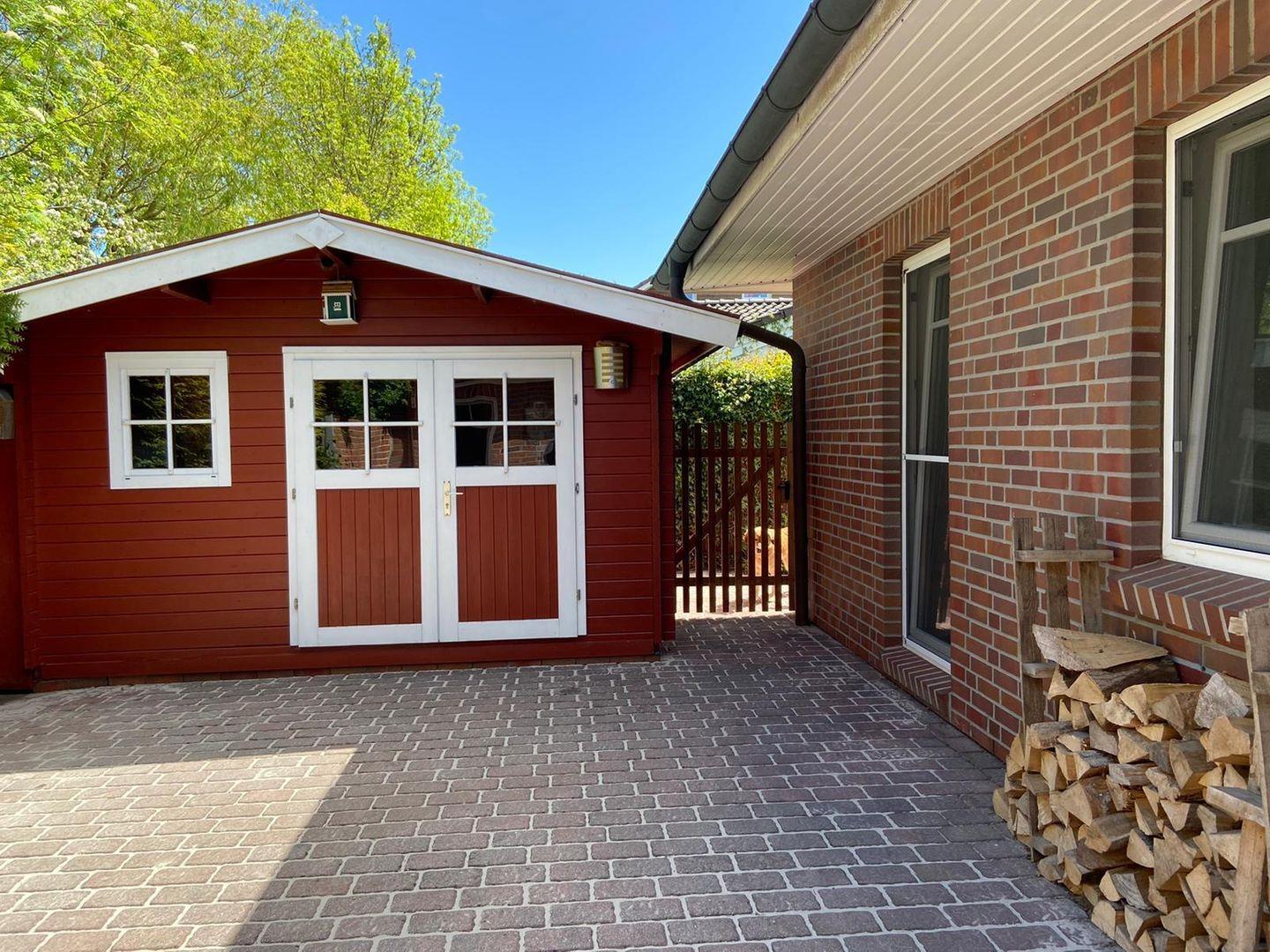 Von hier führt eine Terrassentür in den nicht einsehbaren Innenhof mit dem Saunahaus. Saunahandtücher bringen die Gäste selbst mit oder können bei der Fewo-Agentur gegen Gebühr ausgeliehen werden. Im Holzhaus/Saunahaus befindet sich ein Crosstrainer für Ihre Fitness. In der Garage steht eine Tischtennisplatte mit Zubehör zu Ihrer Nutzung bereit.