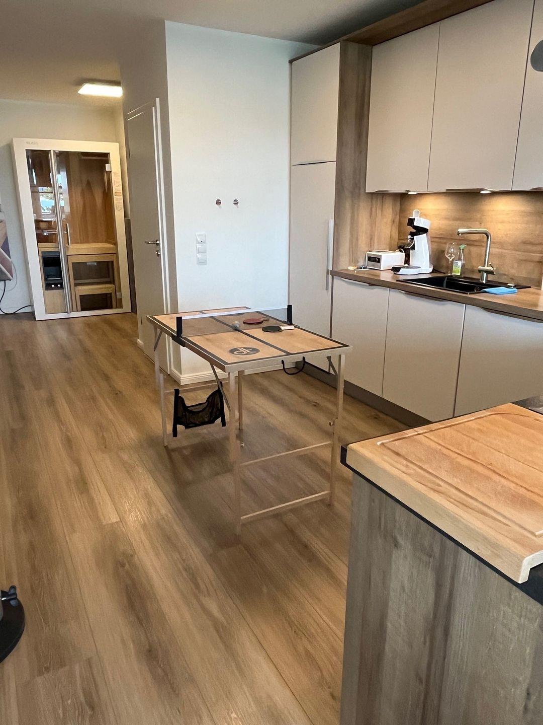 Zu ihren Vorzügen gehören neben Induktion Herd und Backofen auch ein Kühlschrank (mit Gefriermöglichkeit), Kaffee- und Espressomaschine, Wasserkocher, Toaster sowie eine praktische Spülmaschine. Selbstverständlich stehen auch Geschirr, Besteck und Küchenutensilien zur Verfügung. WLAN ist vorhanden und ein Strandkorb direkt am Strand erwartet Sie.