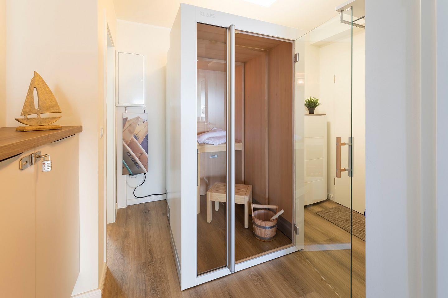 Eine Sauna rundet die Ausstattung ab.