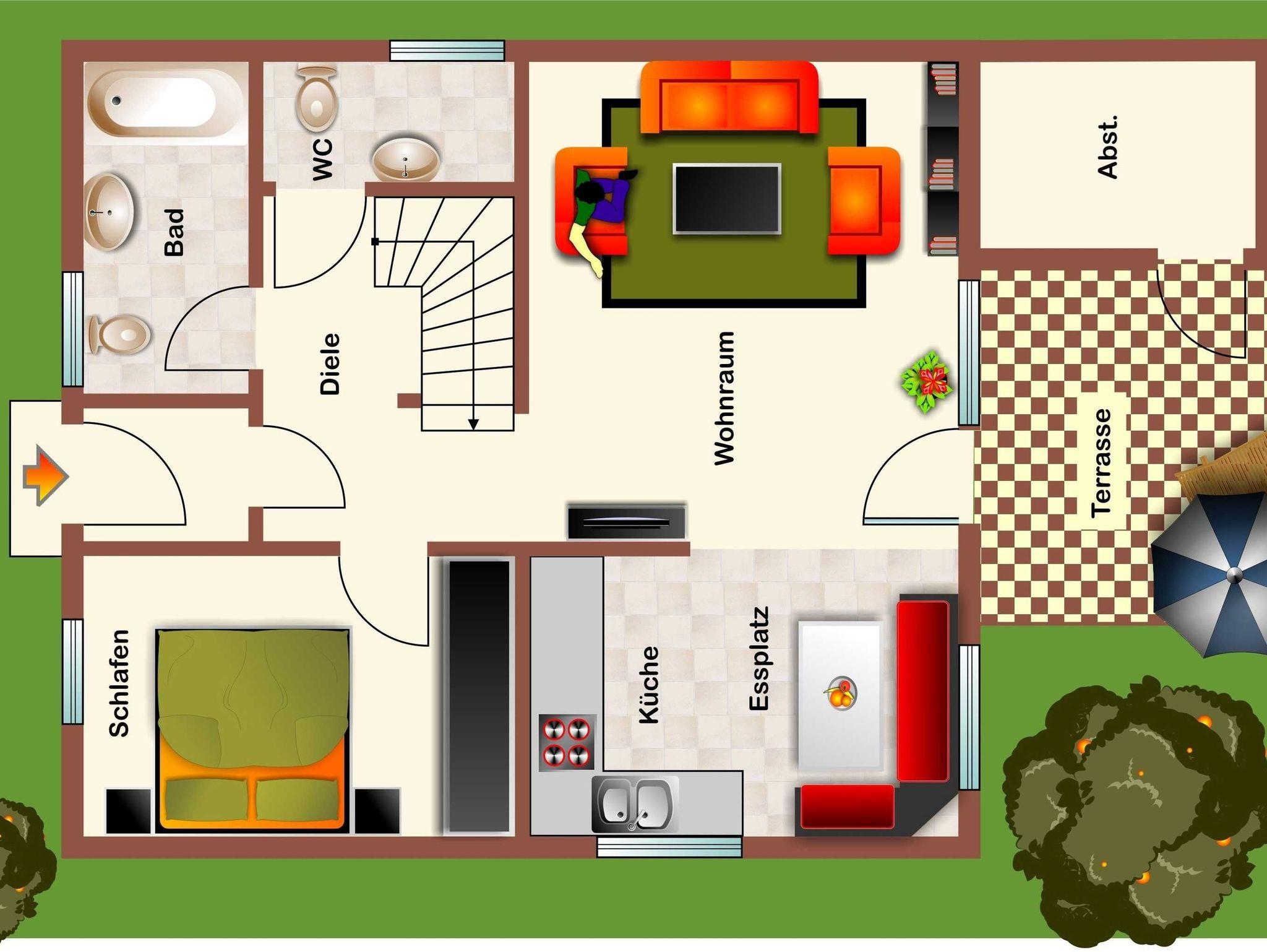 Unsere gemütlichen Ferienhäuser vom Typ Deichgraf 86 verfügen über ca. 86 m² Wohn-/Nutzfläche und können teilweise mit bis zu 7 Personen (+1 Kleinkind im Kinderreisebett) belegt werden (bitte Beschreibung der einzelnen Wohneinheiten beachten). Im Erdgeschoss befindet sich jeweils das Badezimmer (ebenerdige Dusche/WC), ein zusätzliches WC, ein Schlafraum (Ausstattung s. Wohneinheiten) und das Wohnzimmer mit Essecke und offener Küche (Cerankochfeld/Backofen, Kühlschrank/Gefrierfach, Spülmaschine). Zugang zur möblierten Terrasse und außenliegendem Abstellraum vom Wohnzimmer. Im Obergeschoss befinden sich 2 weitere Schlafräume (Ausstattung s. Wohneinheiten). Nichtraucherhäuser - kostenloses WLAN - Haustiere erlaubt - Brötchenservice von Ostern bis Oktober!