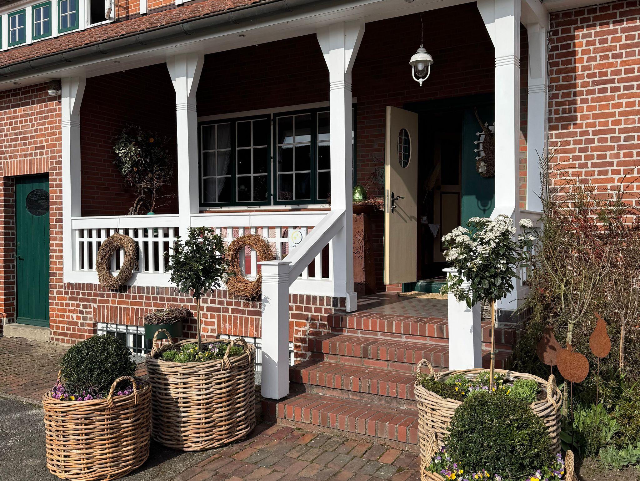 Wir laden Sie zu entspannten Urlaubstagen in unseren liebevoll eingerichteten Ferienwohnungen und Doppelzimmern ein in unserem wunderschönem Altländer Bauernhaus. Das Haus wurde 1908 von zwei Architekten aus Bremen entworfen, nachdem das alte Bauernhaus abgebrannt war. Das neue Gebäude sollte zur Region passen, aber auch ein paar Besonderheiten haben. Man entschied sich damals für eine Veranda mit Haupteingang an der Seite und dahinter eine großzügige Empfangshalle mit einer Galerie. Die sogenannte Brauttür im Giebel ist nur ein Schmuckstück und war nie begehbar.
