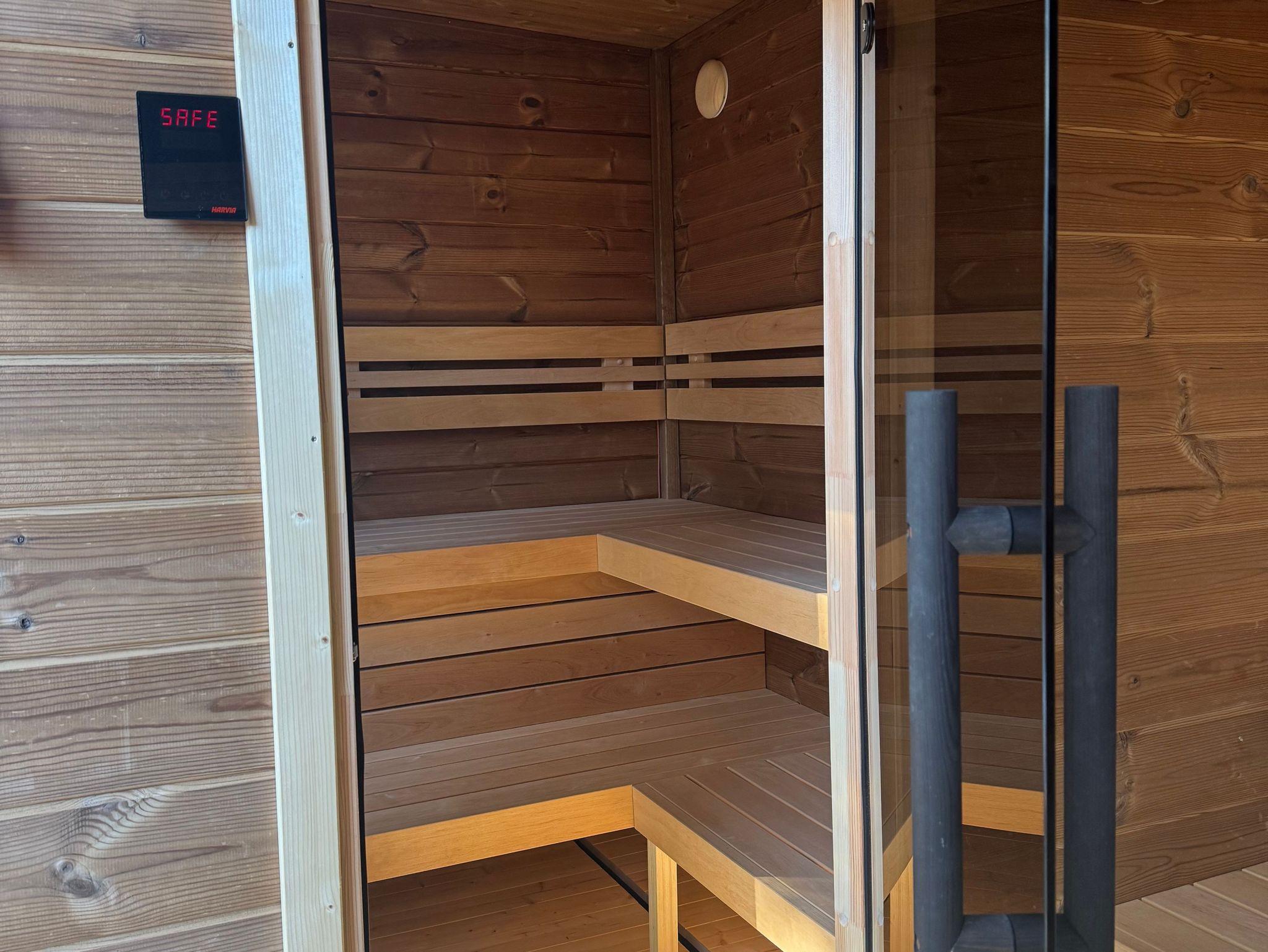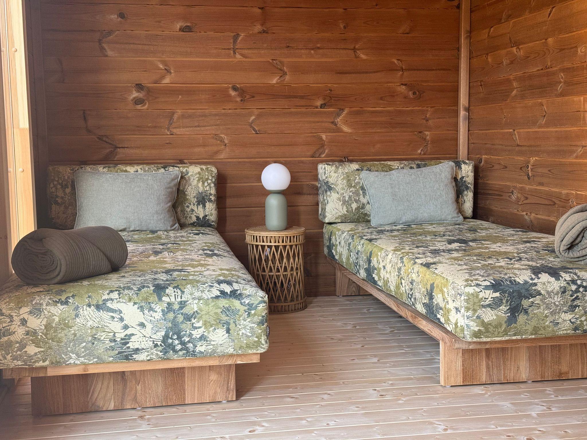 Ergänzt wird der Wellnessbereich durch einen Jacuzzi im Garten sowie einen gemütlichen Ruheraum mit Liegen, in dem Sie nach dem Saunagang entspannen und zur Ruhe kommen können.