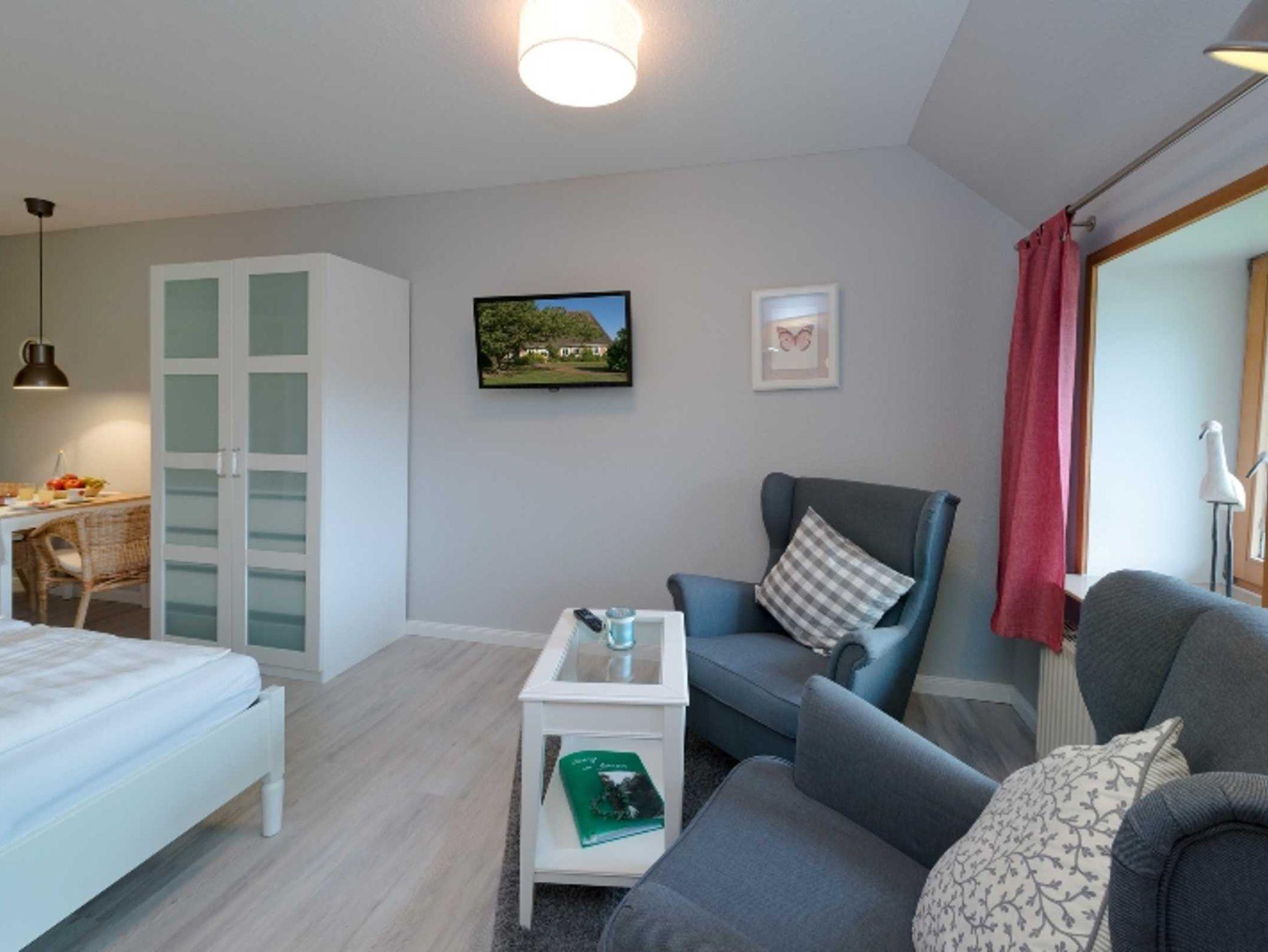 Die 25qm großen Appartements (geeignet für 2 Personen) wurden im April 2016 renoviert und liegen im Parterre des 300 Jahre alten Fachwerkbauernhauses. Sie verfügen über ein Wohn-Schlafzimmer mit Doppelbett, einer Sitzecke mit Sessel und TV, einer Kochnische und einem separaten Bad mit Dusche und WC. Hunde auf Anfrage.