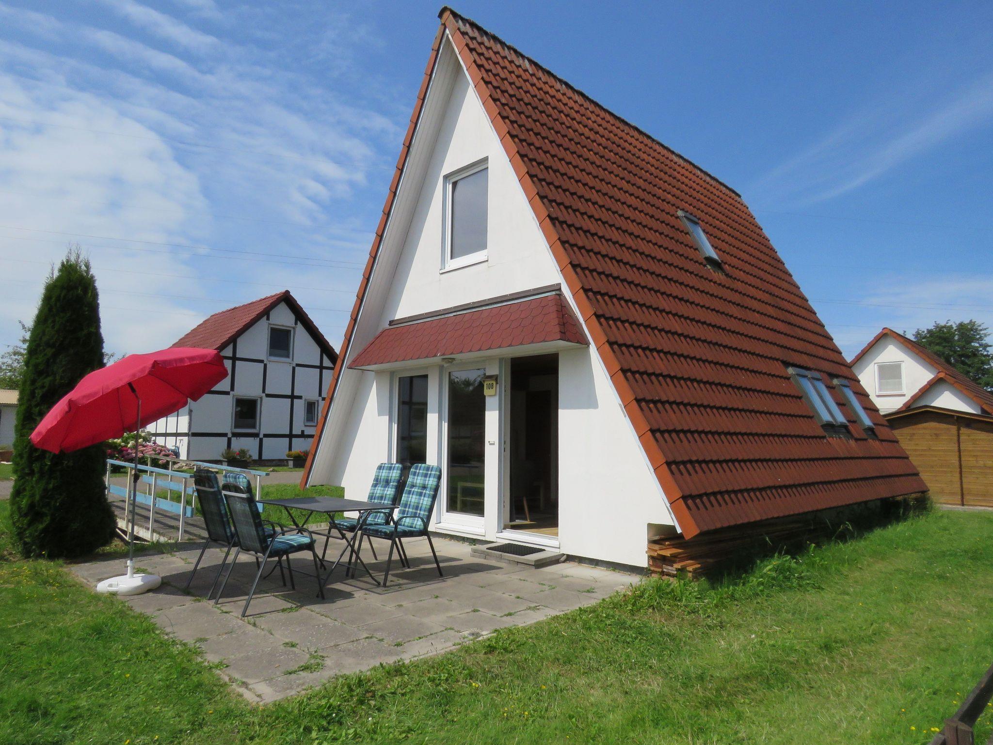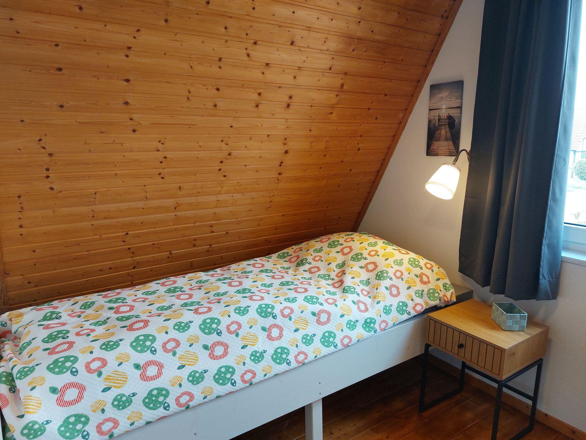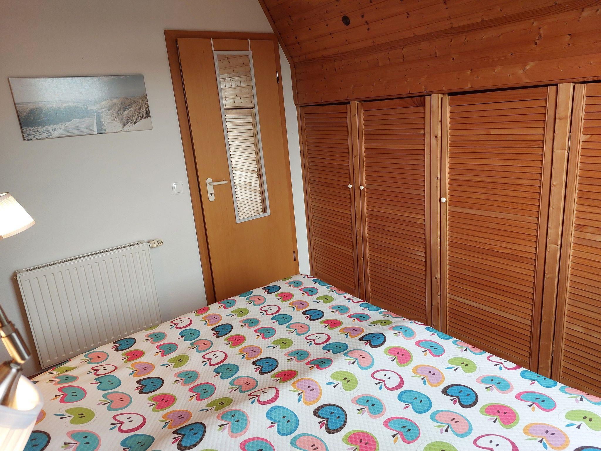 Das Nurdach-Ferienhaus Nr. 108, vom Typ Elbe, verfügt über eine Wohn-/Nutzfläche von ca. 50 m² und kann mit bis zu 5 Personen belegt werden (+ 1 Kleinkind im Kinderreisebett). Im Erdgeschoss befinden sich das Badezimmer (Dusche/WC), der innenliegende Abstellraum, die offene Küche (Ceran-Kochfeld/Backofen, Kühlschrank/Gefrierfach und Spülmaschine) mit Essplatz und der Wohnbereich (Schlafcouch für die 5. Person). Zugang zum Haus über die möblierte Terrasse in den Wohnbereich (Panoramafensterfront). Im Obergeschoss befinden sich ein großer Schlafraum mit 2 zusamengestellten Einzelbetten und großem Einbauschrank und ein kleiner Schlafraum mit 2 eingebauten Einzelbetten und kleinem Einbauschrank. Ein geräumiger Abstellraum für Fahrräder etc. befindet sich hinter dem Haus. Nichtraucherhaus - Haustiere erlaubt - Brötchenservice von Ostern bis Oktober!