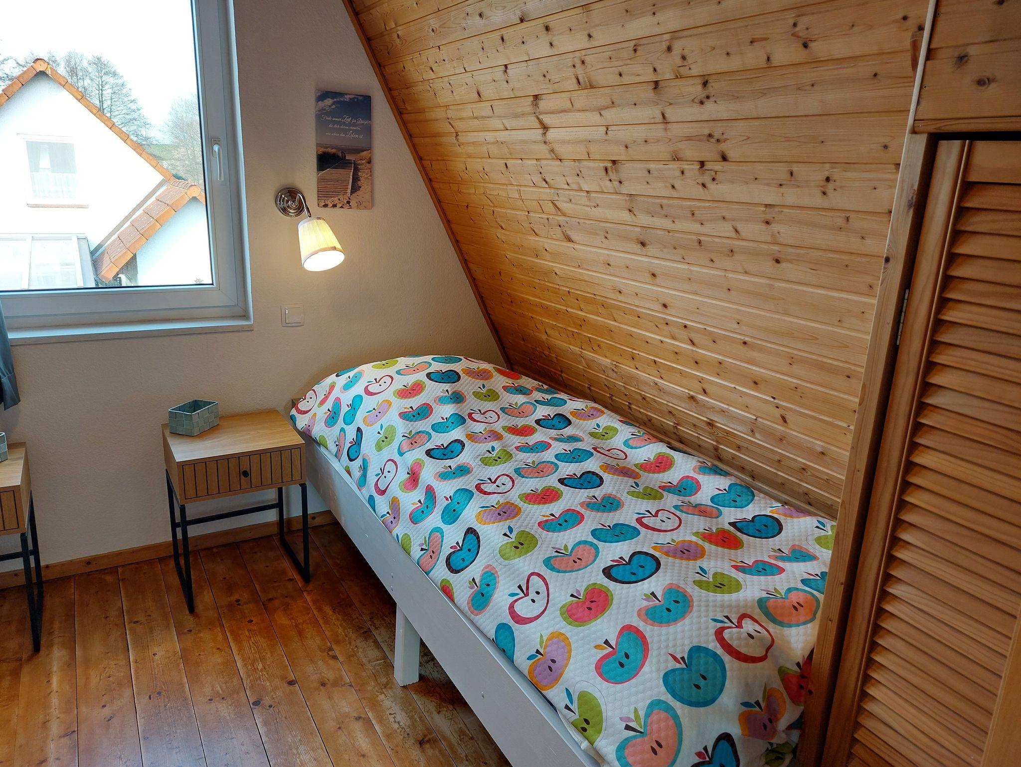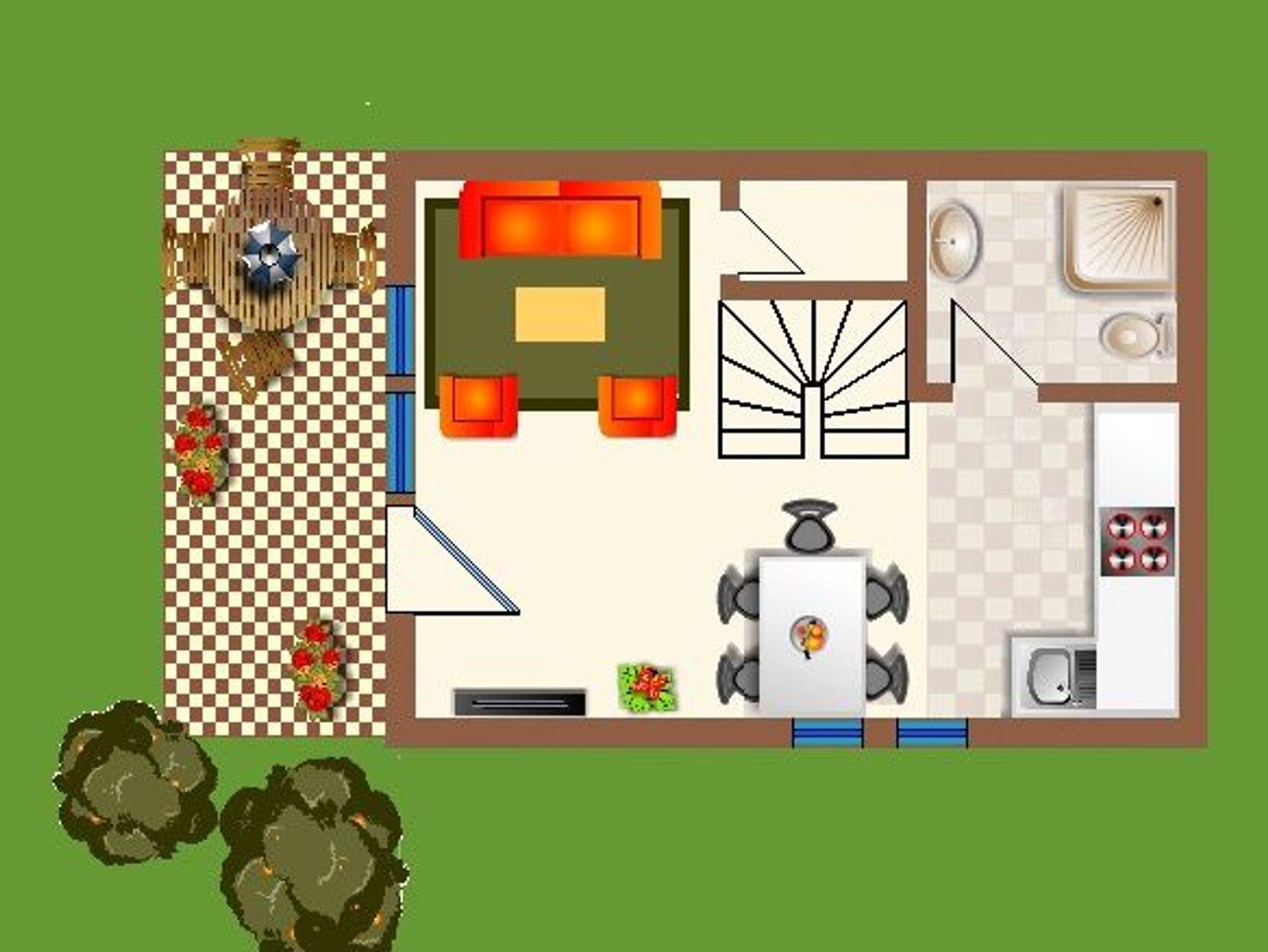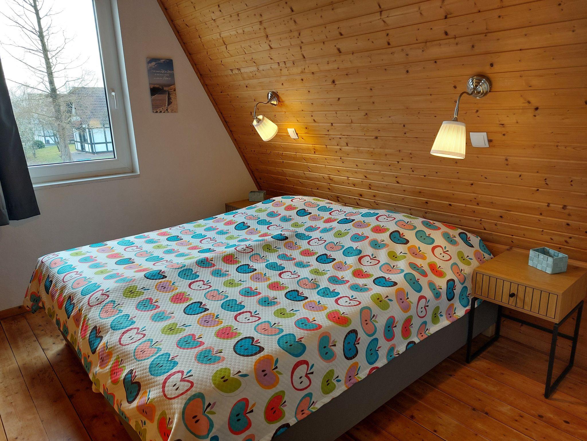 Das Nurdach-Ferienhaus Nr. 108, vom Typ Elbe, verfügt über eine Wohn-/Nutzfläche von ca. 50 m² und kann mit bis zu 5 Personen belegt werden (+ 1 Kleinkind im Kinderreisebett). Im Erdgeschoss befinden sich das Badezimmer (Dusche/WC), der innenliegende Abstellraum, die offene Küche (Ceran-Kochfeld/Backofen, Kühlschrank/Gefrierfach und Spülmaschine) mit Essplatz und der Wohnbereich (Schlafcouch für die 5. Person). Zugang zum Haus über die möblierte Terrasse in den Wohnbereich (Panoramafensterfront). Im Obergeschoss befinden sich ein großer Schlafraum mit 2 zusamengestellten Einzelbetten und großem Einbauschrank und ein kleiner Schlafraum mit 2 eingebauten Einzelbetten und kleinem Einbauschrank. Ein geräumiger Abstellraum für Fahrräder etc. befindet sich hinter dem Haus. Nichtraucherhaus - Haustiere erlaubt - Brötchenservice von Ostern bis Oktober!